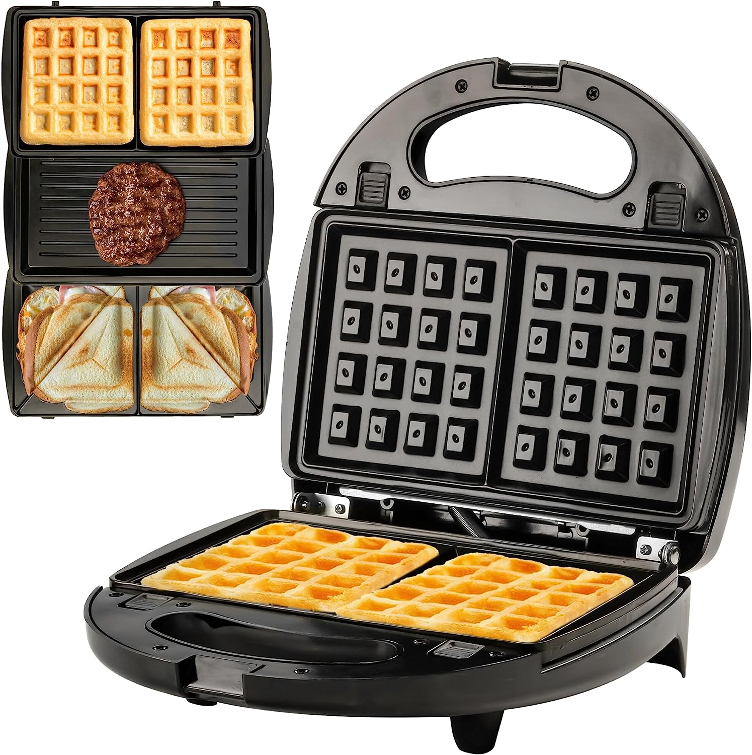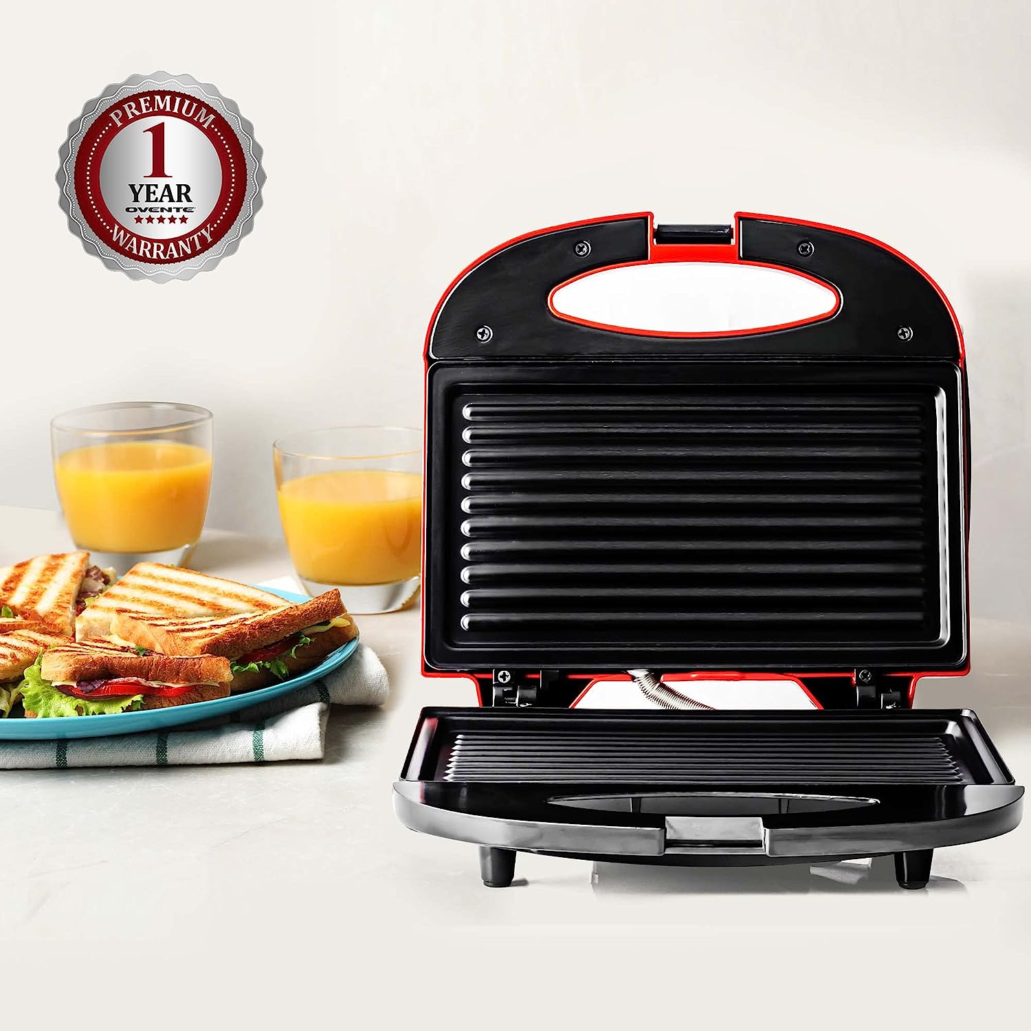 OVENTE Electric Sandwich Maker with Non-Stick Cooking Plates, Indicator Lights, Cool Touch Handle, Easy to Clean & Store, 9"D x 9"W x 3.5"H , Black GPS401B, 750 watts
