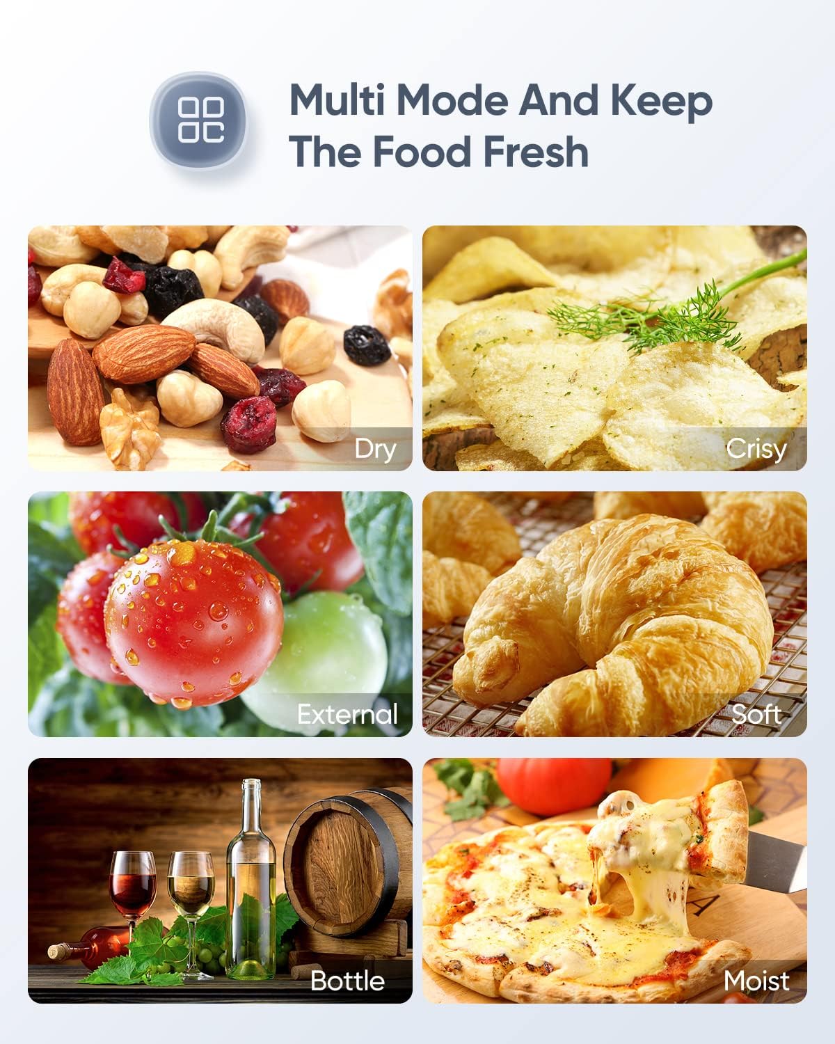 • 【5 Adjustable Modes】Dry/Moist/VAC/External VAC/Seal. Just put your bag into the machine, choose the Dry/Moist mode, it will start to vacuum and seal automatically. within VAC mode, you can control the vacuum time to fit whatever you seal. Provide your food with the best possible preservation based on your different types