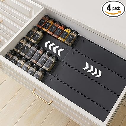 Spice Drawer Organizer, 4 Tier- 4 Pack Drawer Seasoning Organizer Expandable from 13" to 24.4", Spice Rack for Kitchen Drawers, Spice Organization Insert Tray for Drawer (Jars not included)