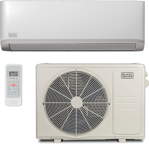BLACK+DECKER 12, 000 BTU Inverter Mini Split Air Conditioner with Heat Pump, Ductless Mini-Split Inverter Air Conditioner Cools & Heats Up To 550 Sq. Ft., Remote Control, 20.8 SEER, 115V, White