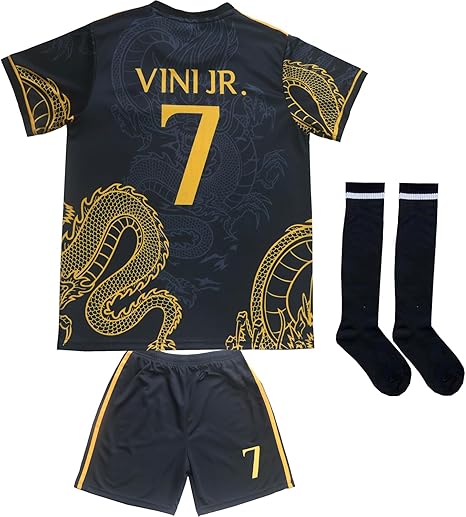 LeenBD 2023/2024 Vini Jr. No #7 Madrid Special Dragon Edition Kids Soccer Jersey Shirts Football Futbol Socks Set Youth Sizes