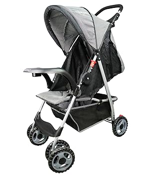 AmorosO Single Stroller - Baby Stroller with Four Wheels - Lightweight Stroller - Convertible Stroller with Extra Storage Space - Foldable Stroller with Sun Protection Hood Cover (Black)