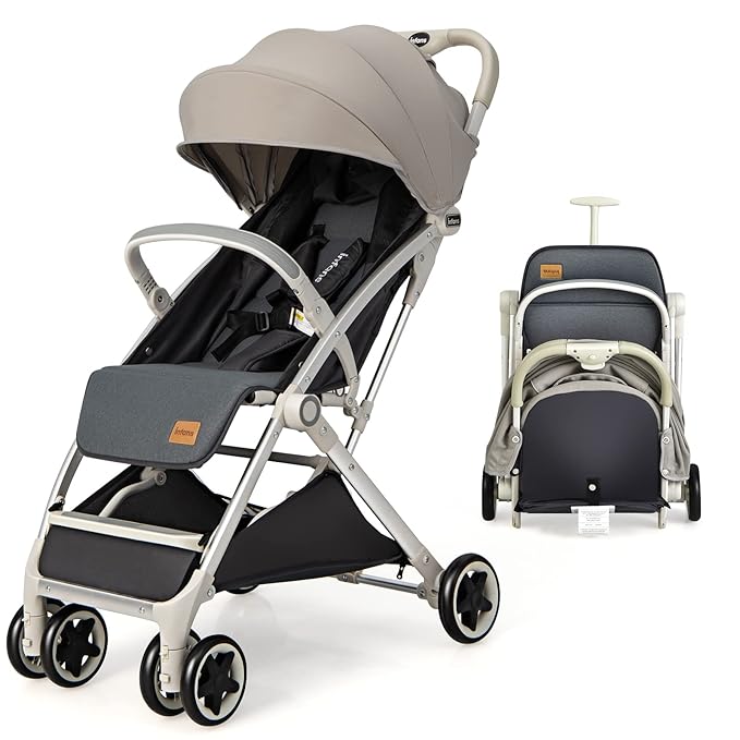 INFANS Lightweight Baby Stroller, Compact Stroller with One-Hand Fold, Travel Stroller for Airplane with Cup Holder, 5-Point Harness, Foot Cover, Canopy, Infant Stroller for 0-36 Month (Grey)