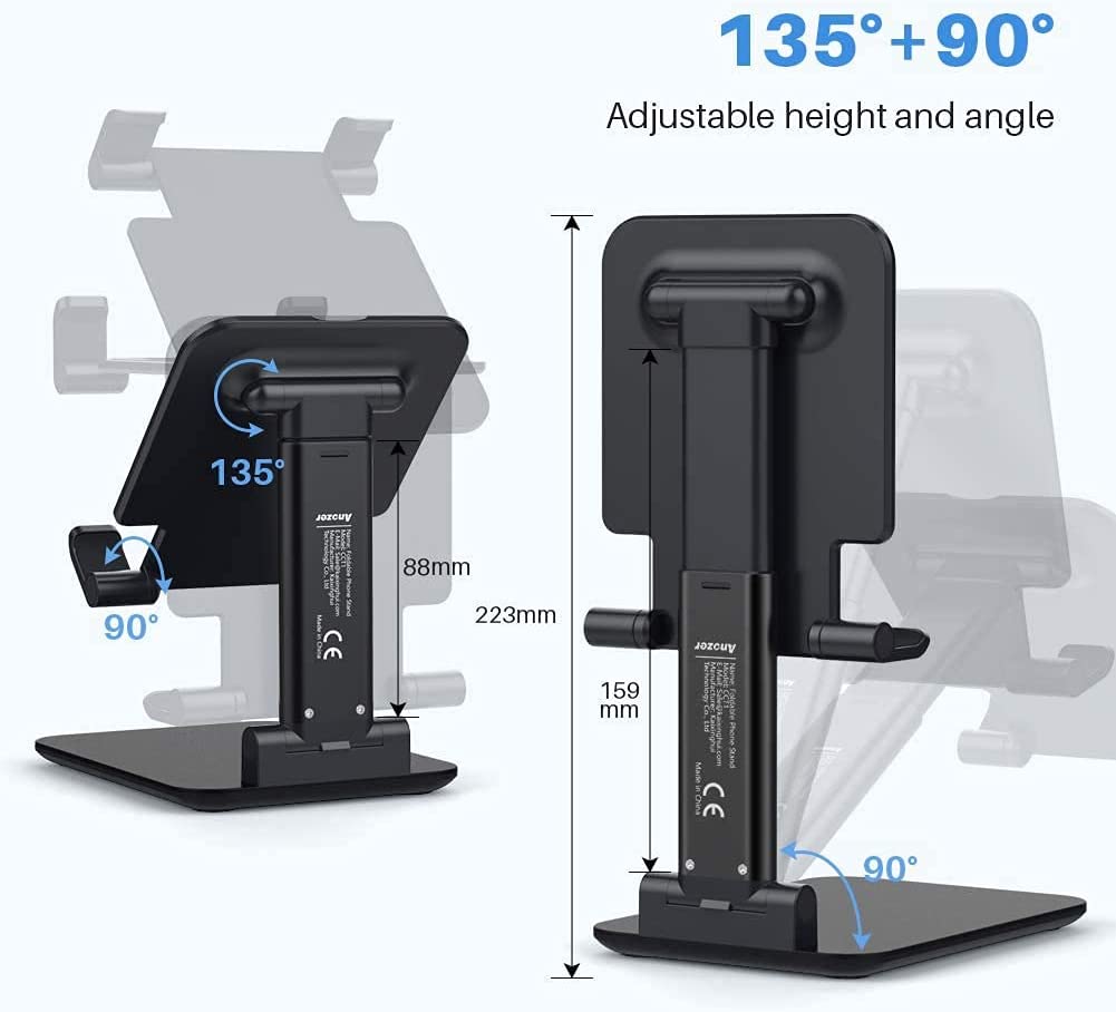 Anozer Tablet Stand Foldable & Adjustable, Portable Monitor Stand 5.55*3.94" Wide, Fit for iPad Holder Stand Compatible with iPad Pro 11, 12.9/iPad 10.9 10th; Surface Pro; Portable Monitor 4.7-15.6"