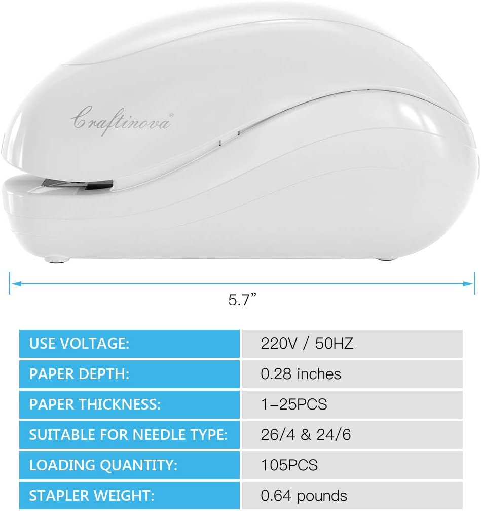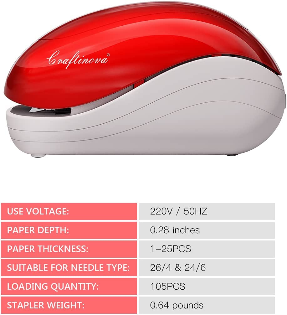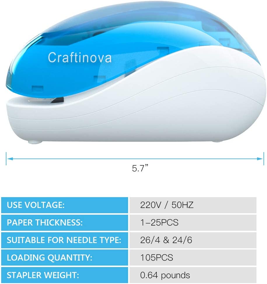 Craftinova Electric Stapler,Including 2000 Staples and 1 adapters,Suitable for Palm Size and high Comfort,25 Sheet Capacity, AC Adapter or Battery Powered,Battery not Included