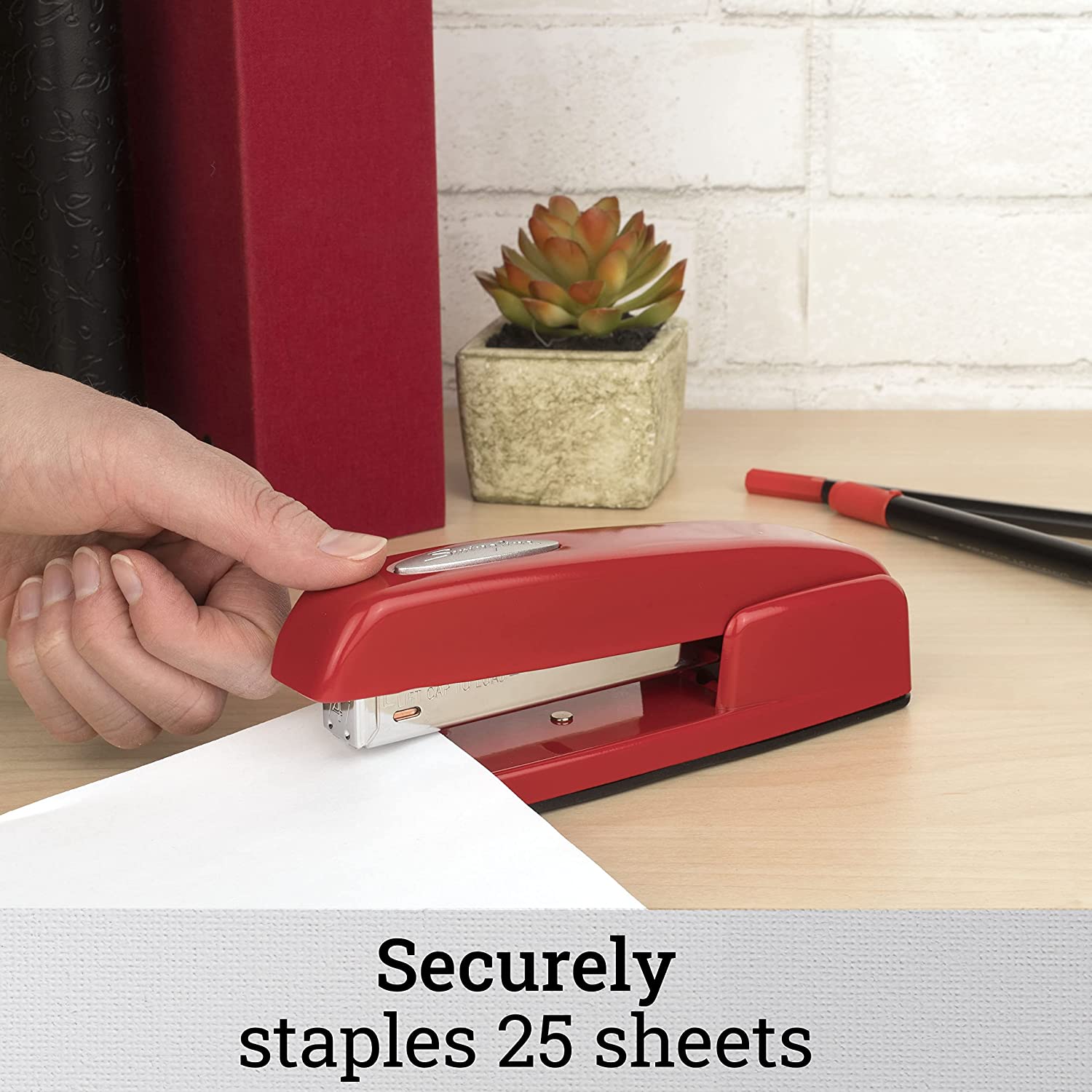 America’s #1 manual desktop stapler is simple, accurate, reliable and strong. Metal construction, inner rail and positive locking latch makes this stapler especially durable, minimizes jamming and keeps staples aligned. The 747 model staples 25 sheets at a time and opens flat for tacking ability to post papers instantly to a bulletin board or similar tackable surface. This stapler also has a reversible anvil for pinning. By turning the anvil you can create a pin staple with legs that point out so it can be removed without a staple remover, and without ripping papers. Backed by a limited lifetime warranty and 100% Performance Guarantee when used with Swingline Premium Staples.