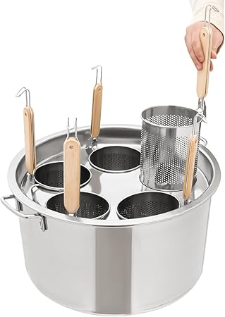 5 Holes Pasta Cooker Insert Set Stainless Steel Pasta Pot with Strainer Basket 37L/39QT Pasta Pot with 5 Strainer Insert Pasta Cooking Cookware for Noodles Dumplings Pasta Kitchen Restaurant