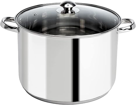Ecolution Stainless Steel Stock Pot with Encapsulated Bottom Matching Tempered Glass Steam Vented Lids, Made Without PFOA, Dishwasher Safe, 12-Quart, Silver