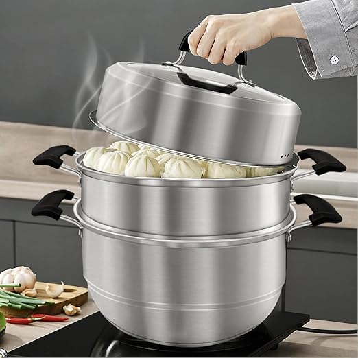 MANO Steamer Pot for Cooking 12.6 inch Steam Pots with Lid 2-tier Stainless Steel Steaming Pot Multipurpose Cookware with Handle for Vegetable, Dumpling, Stock, Sauce, Food_ _