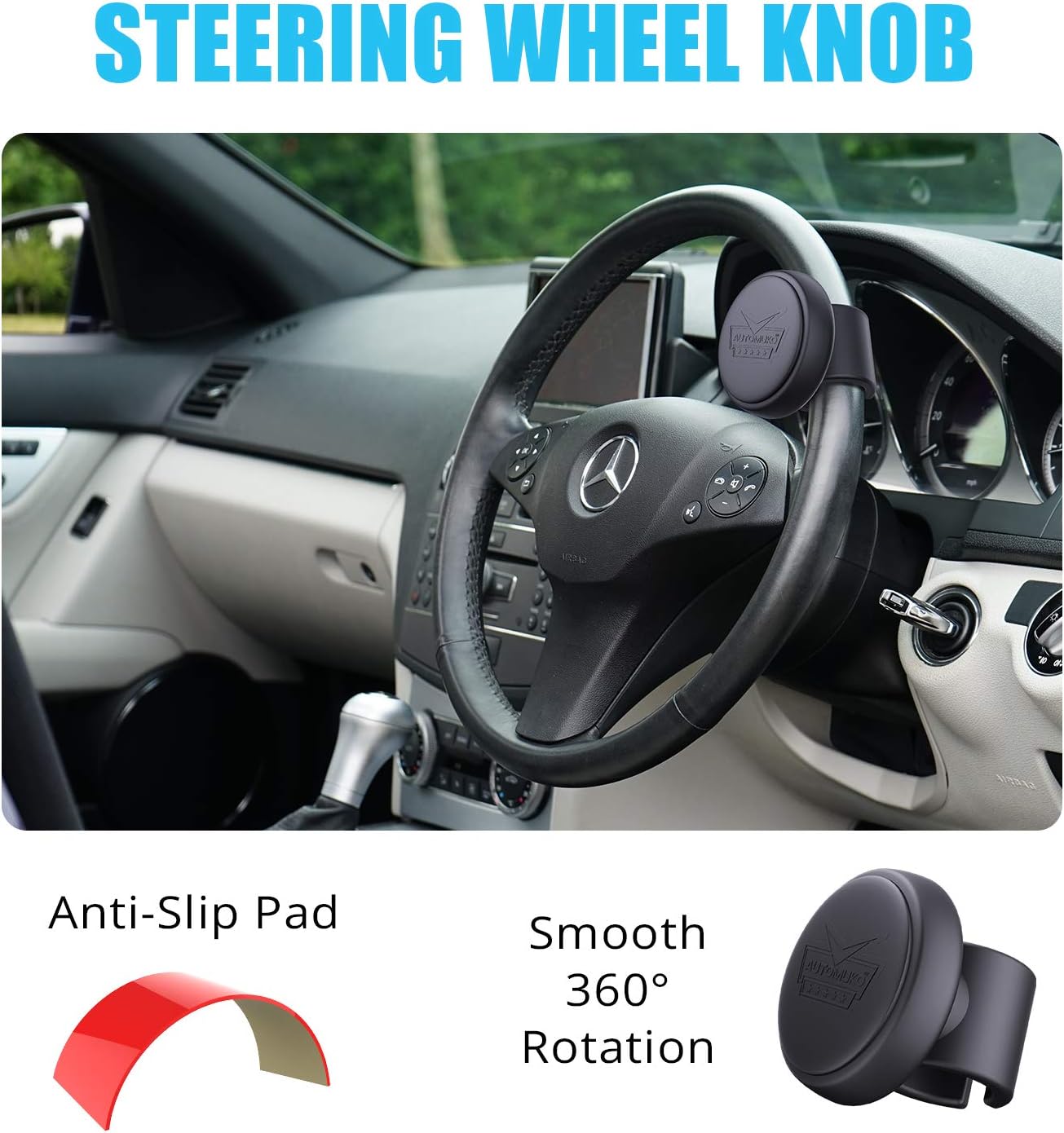 AutoMuko Steering Wheel Spinner, Silicone Power Handle, Steering Wheel knob, Easy Installation No Tools Required (Black)