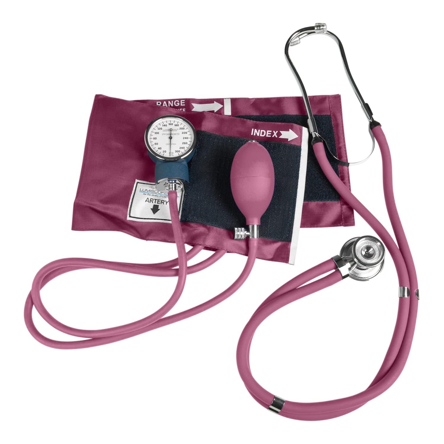 Trusted by doctors and healthcare professionals, Lumiscope's professional blood pressure kit contains a matching aneroid sphygmomanometer, Sprague Rappaport style stethoscope, and zippered carrying case in seven fun colors. For over 80 years, Lumiscope has been developing, manufacturing and marketing quality diagnostic devices, as well as respiratory and thermometry products for hospitals, home health care companies, retailers and consumers.