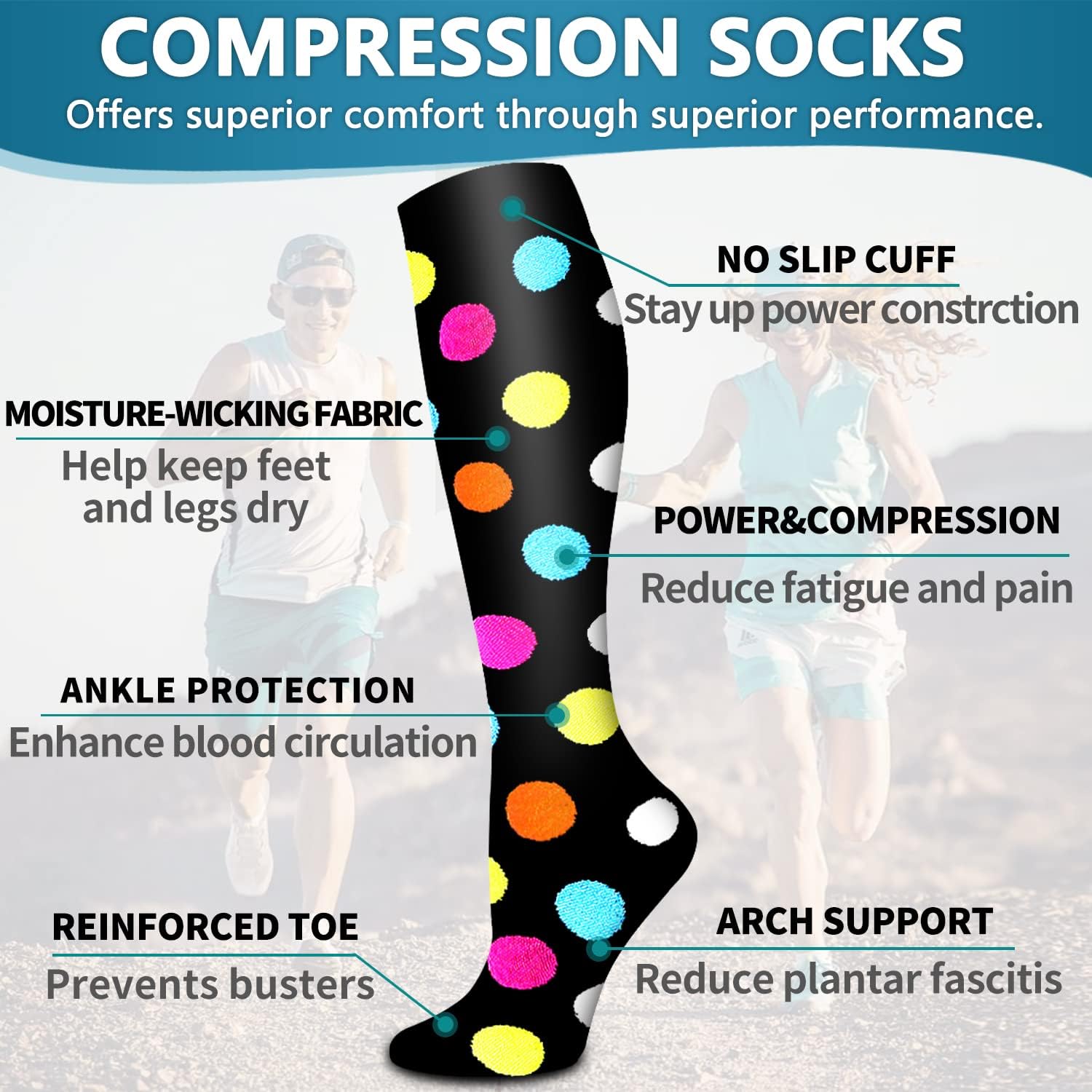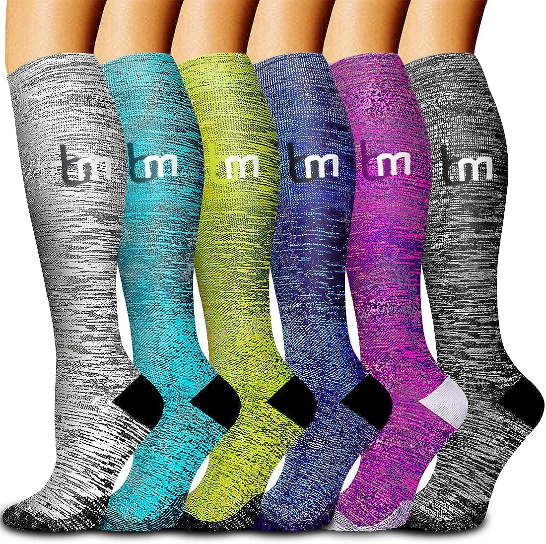 Bluemaple 6 Pack Copper Compression Socks for Women and Men Circulation-Best Support for Medical, Running,Nursing,Athletic