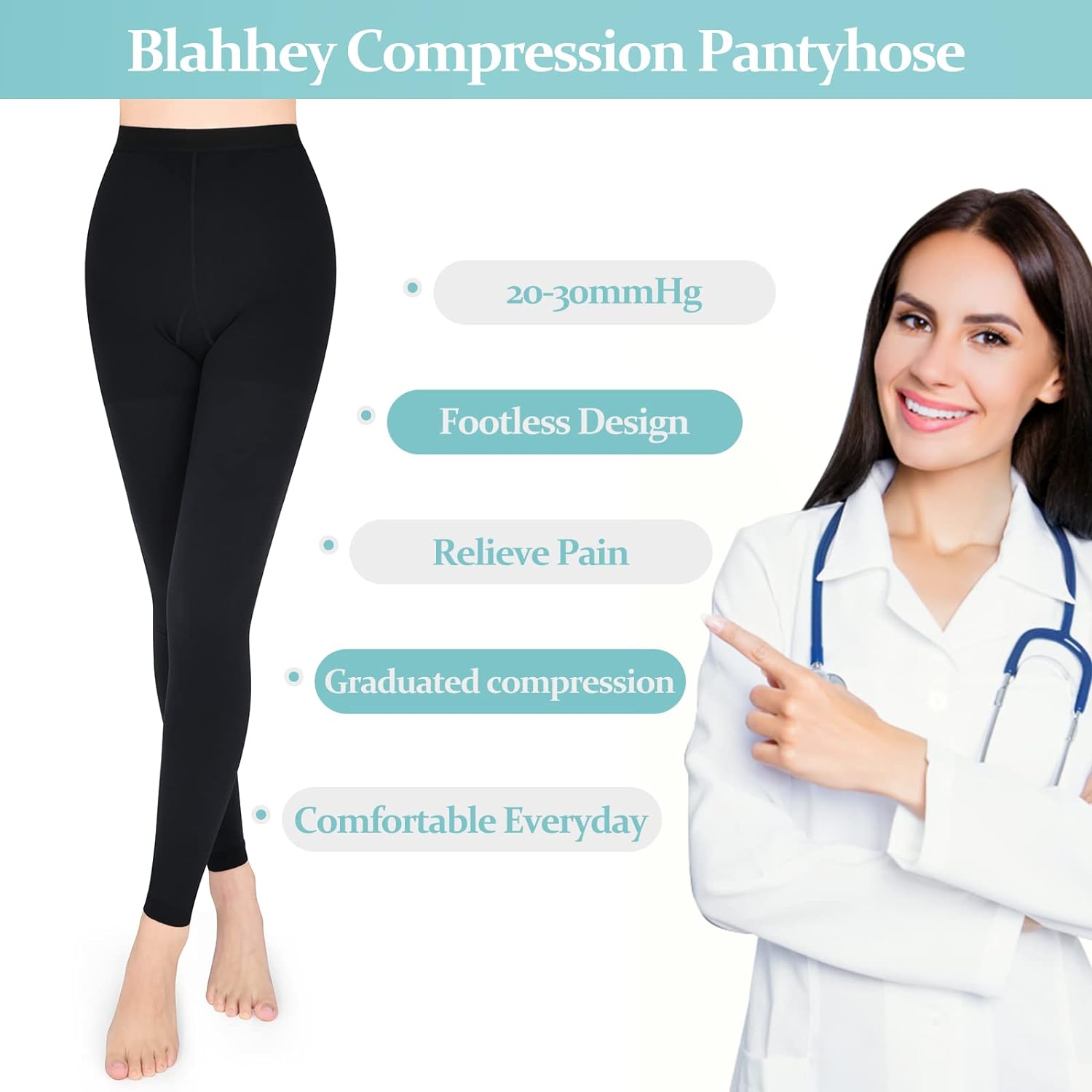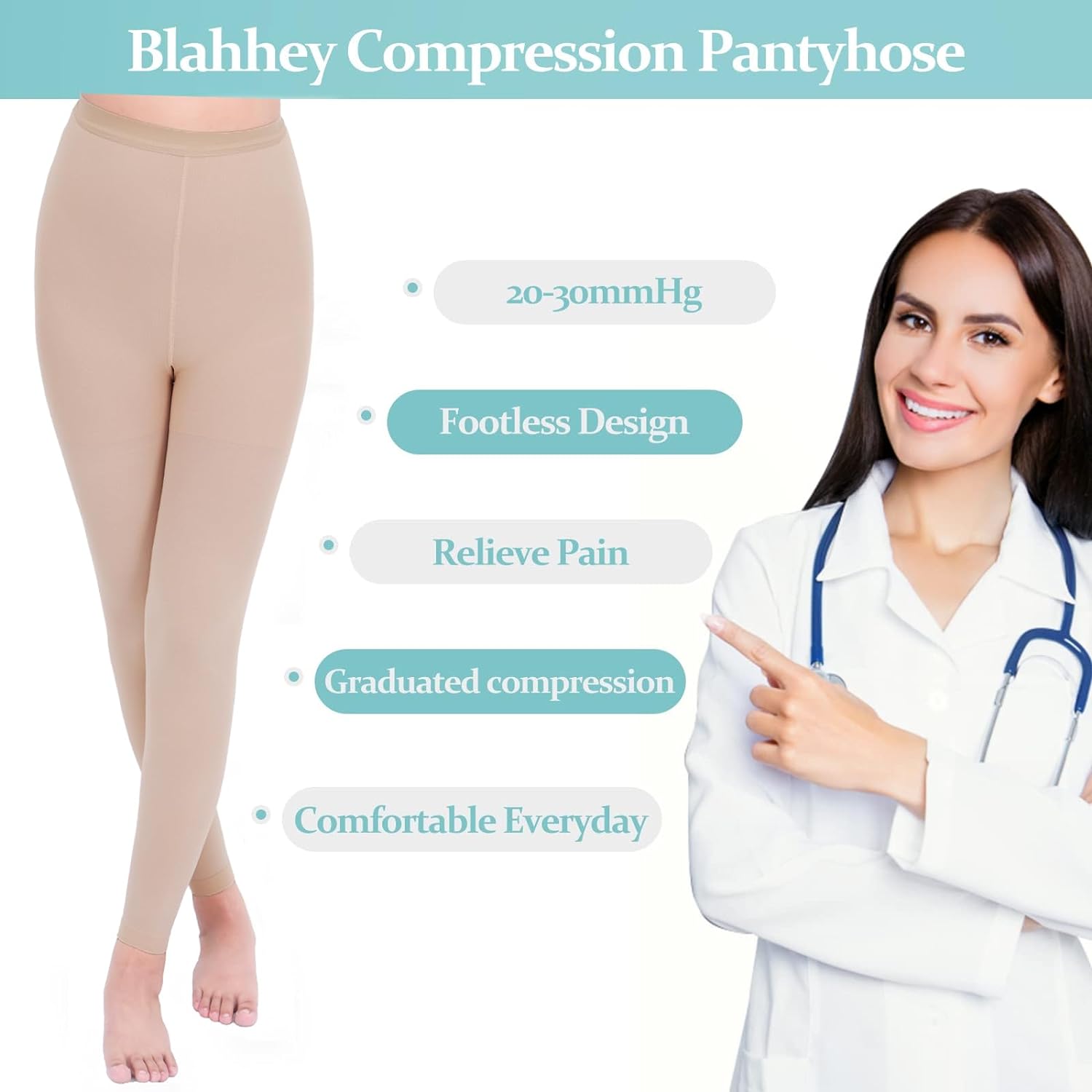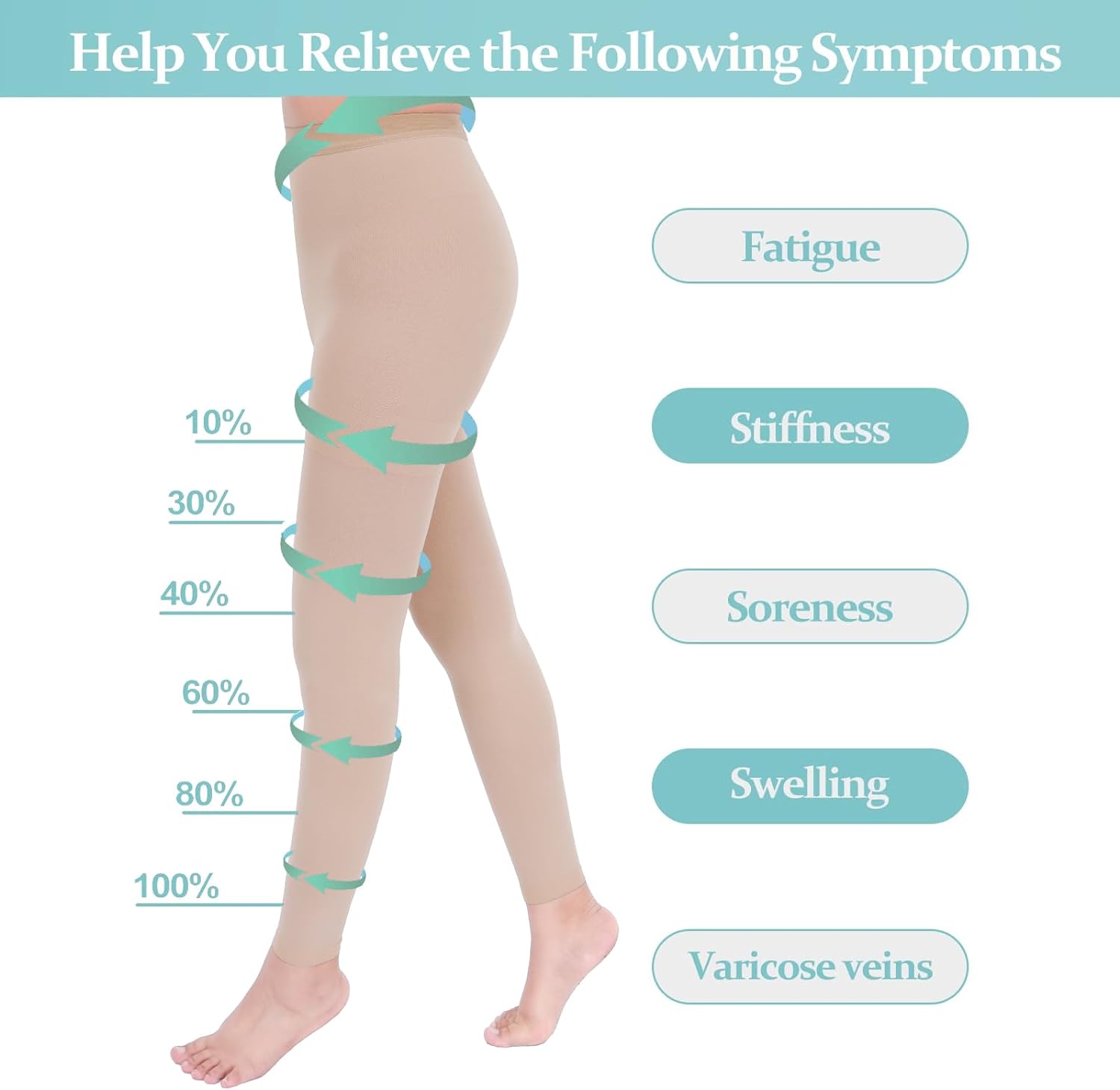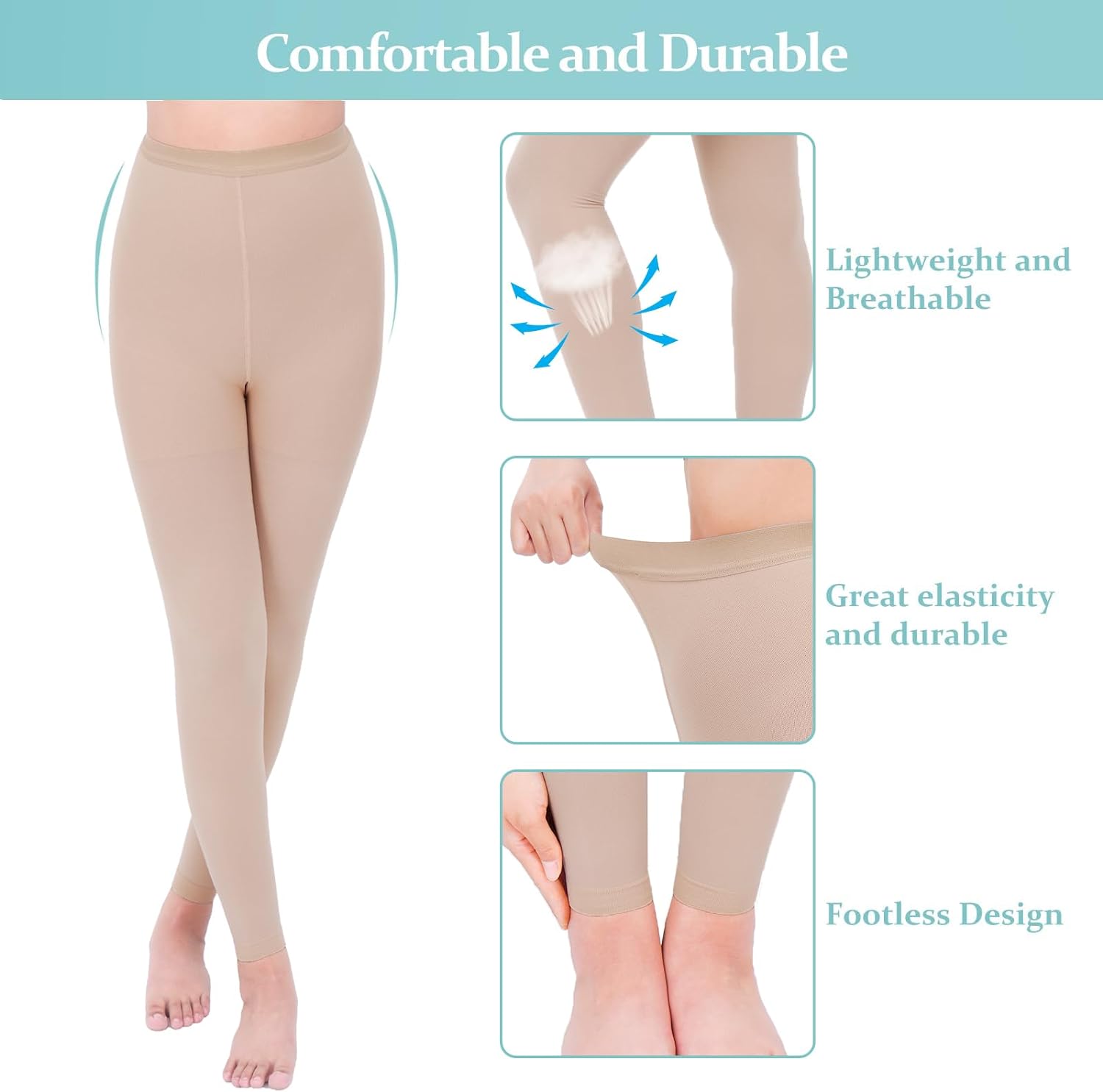 Compression Pantyhose for Women & Men, Footless Compression Stockings, 20-30 mmHg Support