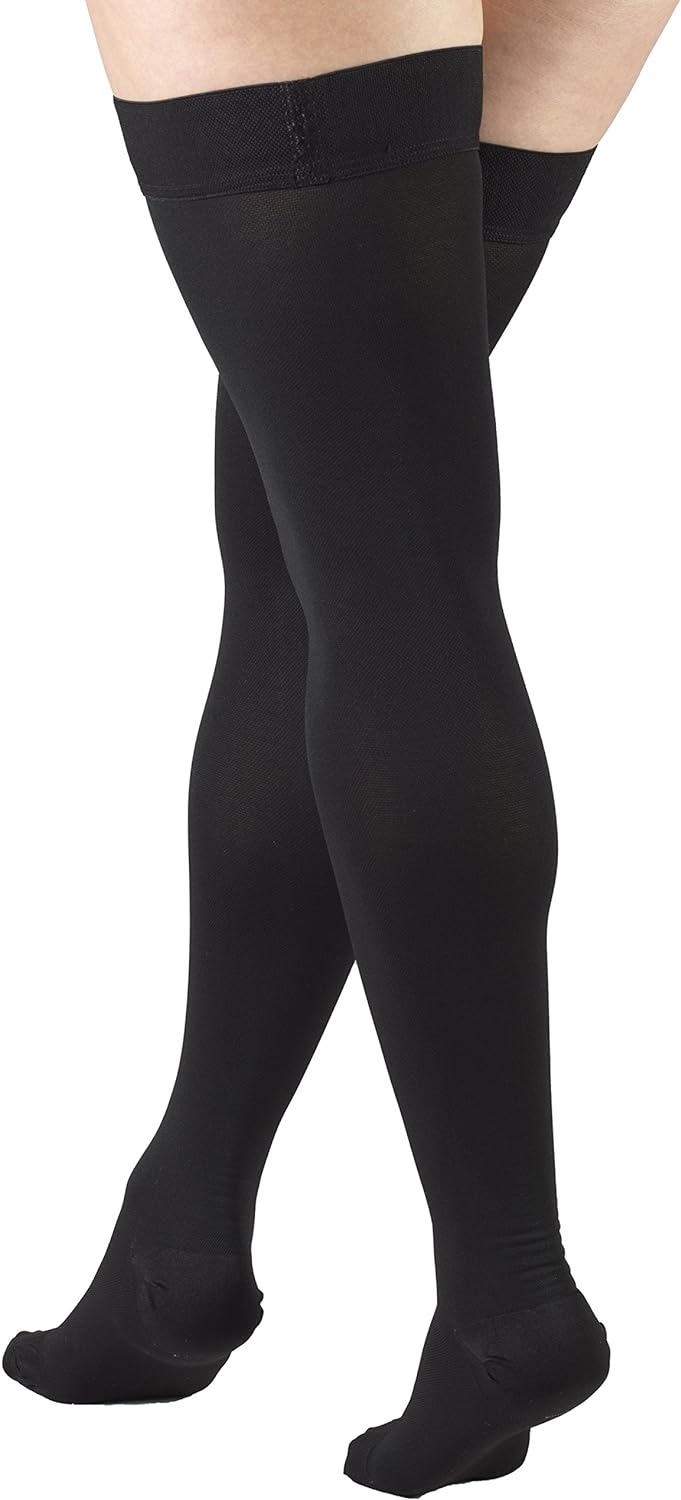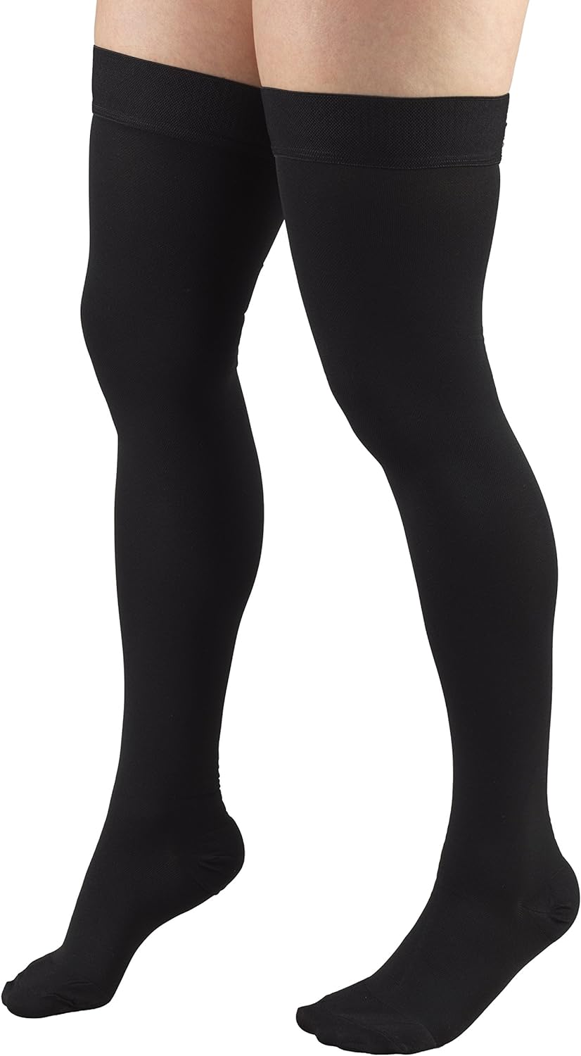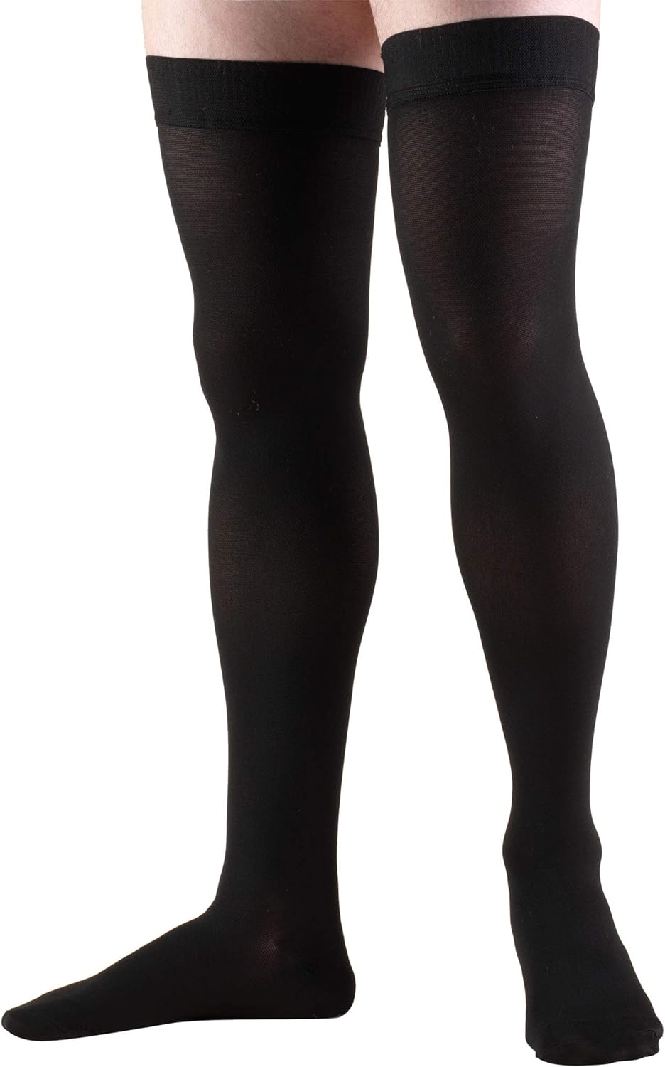 Truform 8848 was created to help relieve conditions associated with poor circulation. Graduated compression technology delivers a compressive action to the leg that is greatest at the ankle, then gradually decreases toward the heart. The 30-40 mmHg very firm compression level is great for post surgery and severe edema, varicose veins, spider veins, hypotension, post thrombotic syndrome (PTS), post sclerotherapy, and more. Truform therapeutic medical stockings feature classic styling and a smooth knit fabric that helps conceal unsightly conditions. The closed toe offers a more natural stocking feel. Color options are basic neutrals for all-occasion wear. Truform stockings, socks and pantyhose feature Graduated Compression Technology, which delivers a compressive action to the leg that is greatest at the ankle, then gradually decreases toward the heart. Graduated compression provides two primary benefits: it helps reduce and prevent swelling for the wearer, and the compression action help to prevent the slowing of blood flow so it can flow more quickly up the leg back toward the heart. Truform graduated compression support hosiery helps maintain positive circulation and leg health. We take the extra time and effort necessary to insure a therapeutically effective, comfortable fit. The combination of state-of-the-art materials and equipment, plus knitting know-how sets Truform apart from the crowd to make your legs look and feel great.