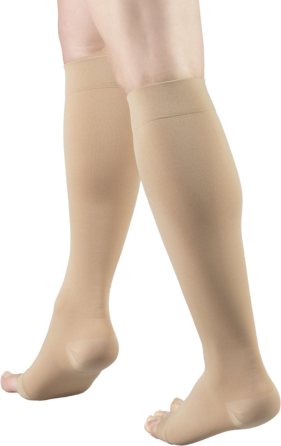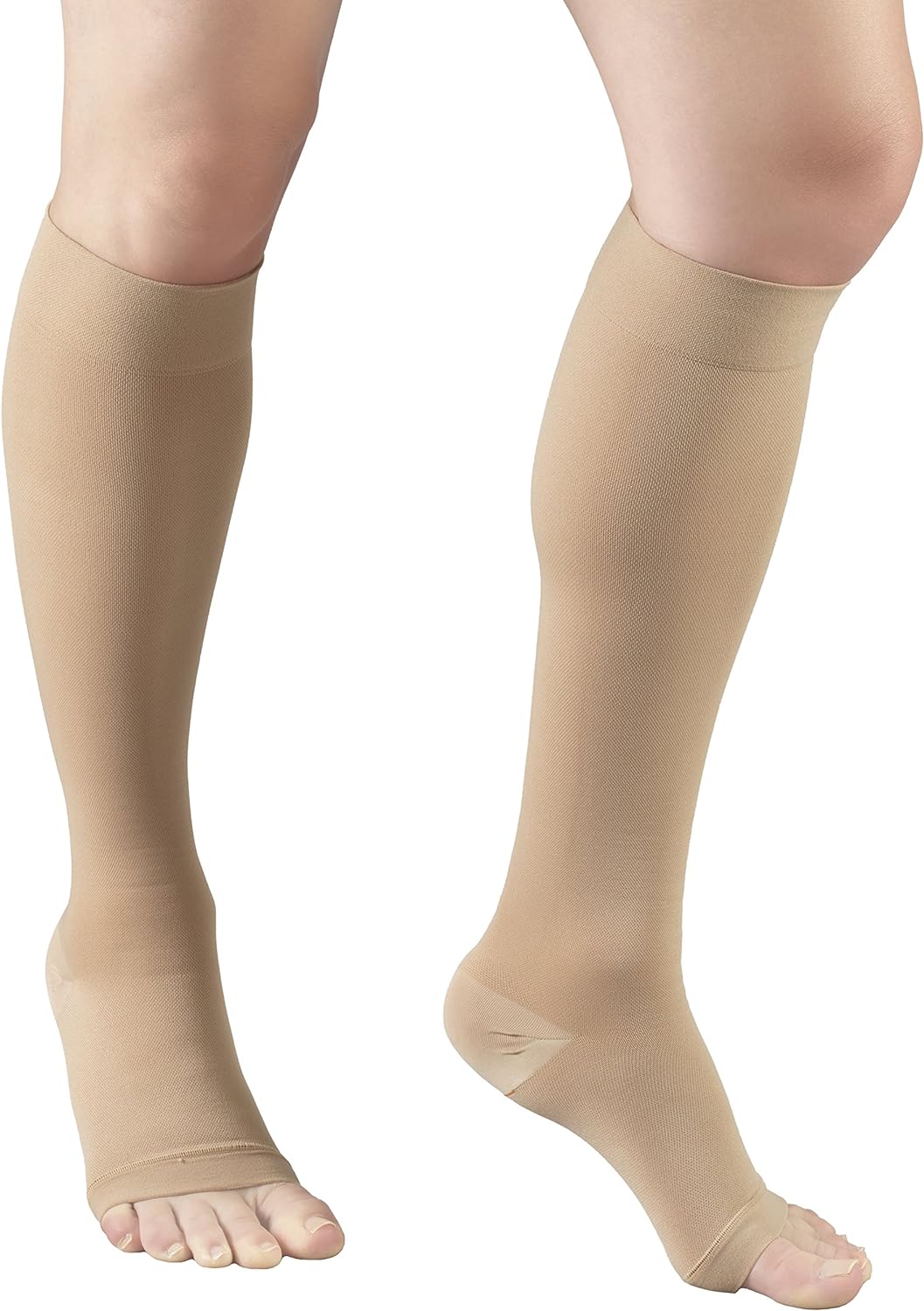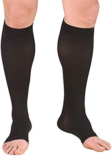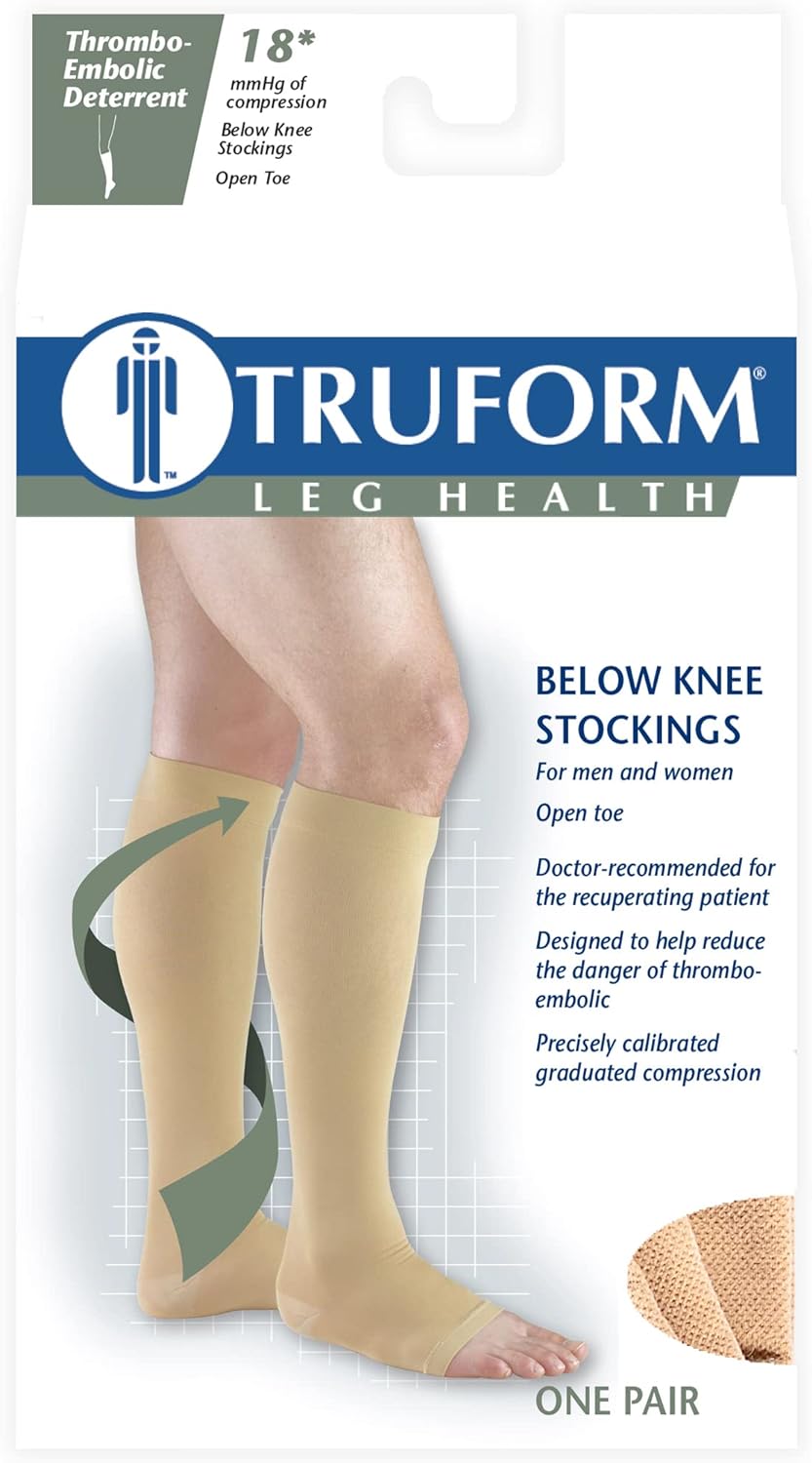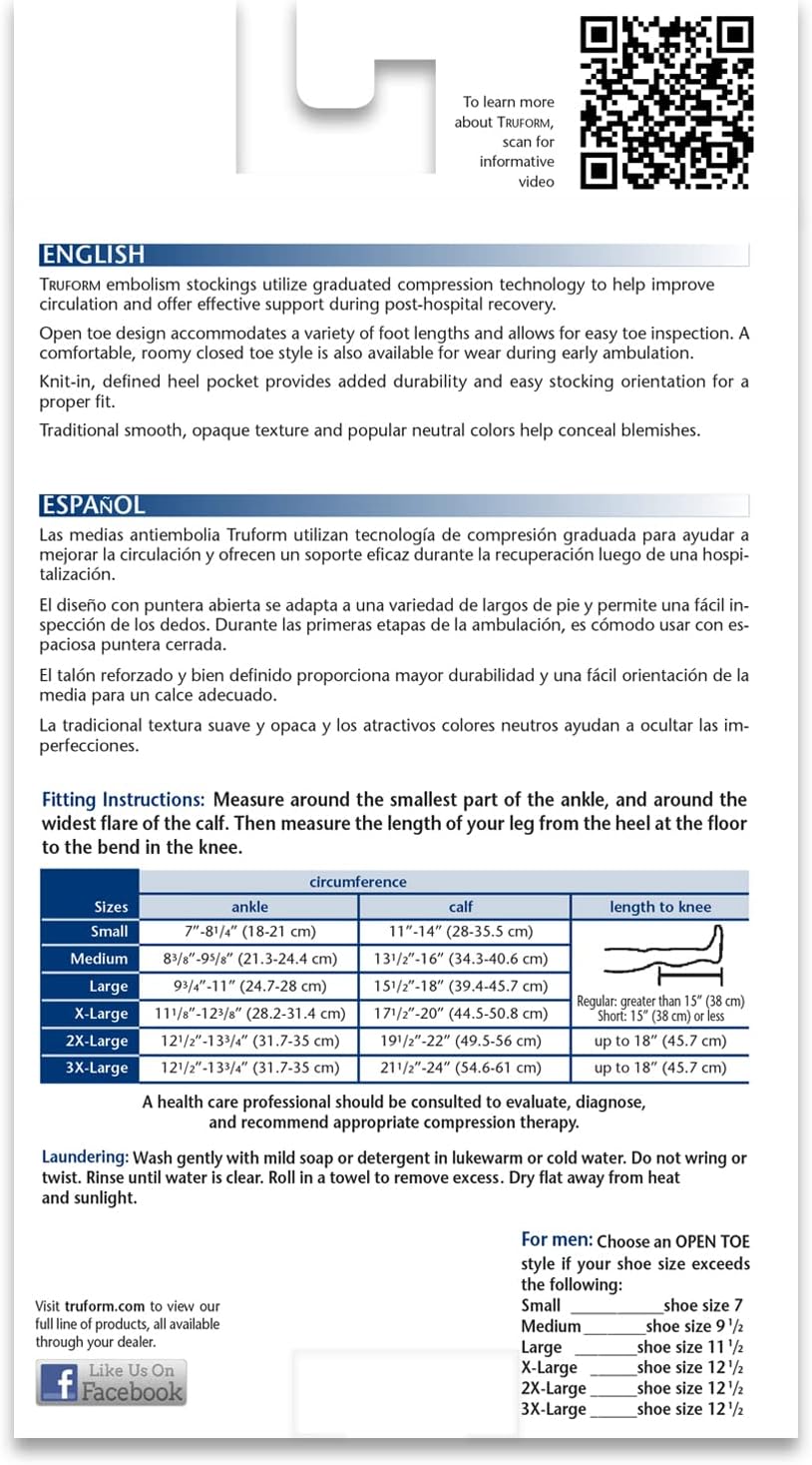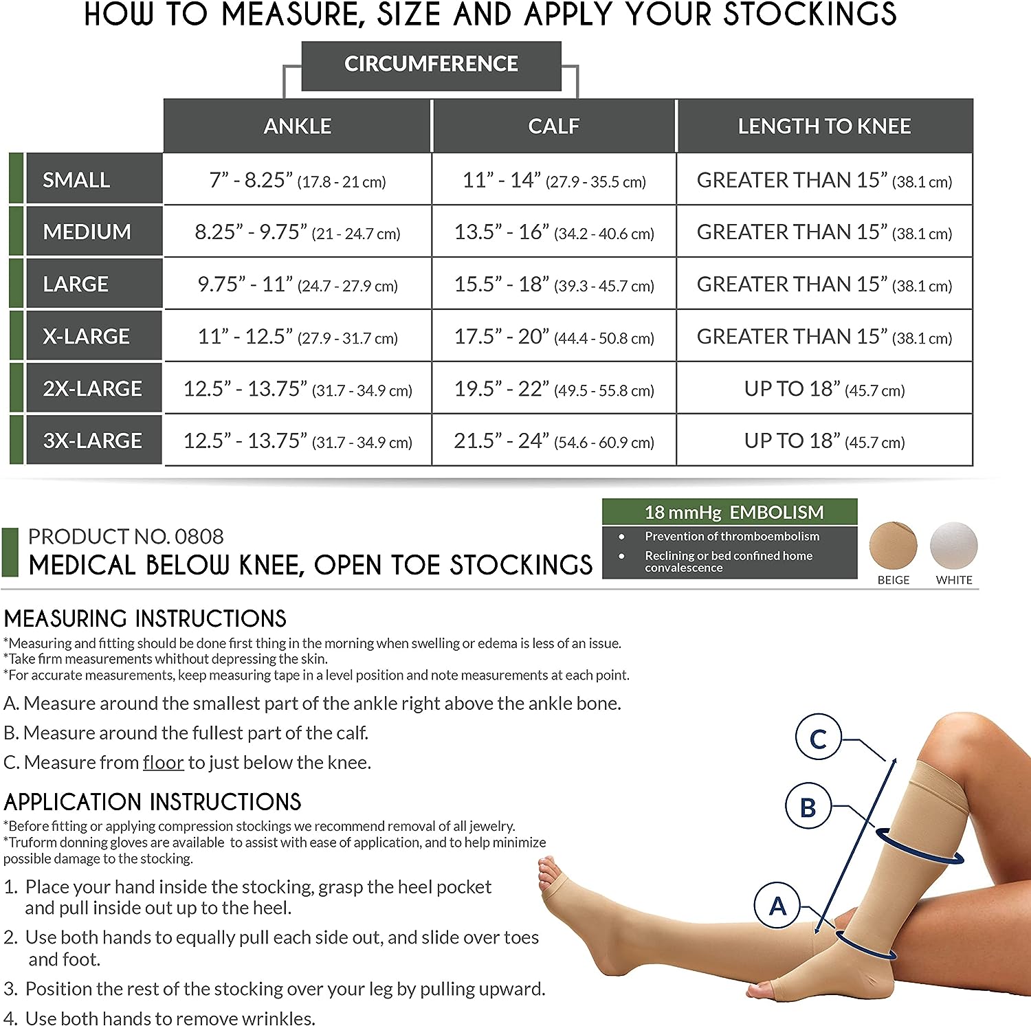 Truform 0808 from the "Classic Medical" series for both men and women uses 15-20 mmHg graduated compression technology to restore leg health. A higher 18 mmHg compression rating is targeted at the ankle, and helps circulation during post hospital recovery. Embolism stockings, commonly known as TED (thrombo-embolism-deterrent) hose are a preferred choice for recuperating patients who are immobilized laying in bed with their feet reclined post-surgical treatment. The smooth knit and traditional styling are made to perform with daily use. Opaque material conceals various conditions using a functional design for increased durability. Sizes range from standard to plus size XXXL. Choose short length size when length from heel at floor to back bend of knee measures less than 15 inches.
