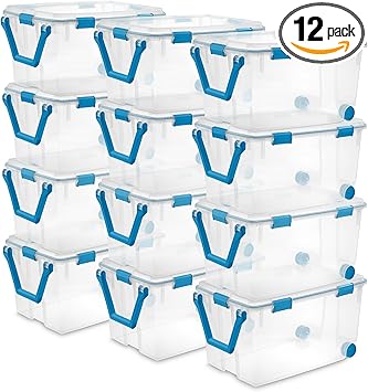 Sterilite 12-Pack Gasket Box, Weather-Resistant Wheeled Storage Bins with Latching Lids, 120 Quart