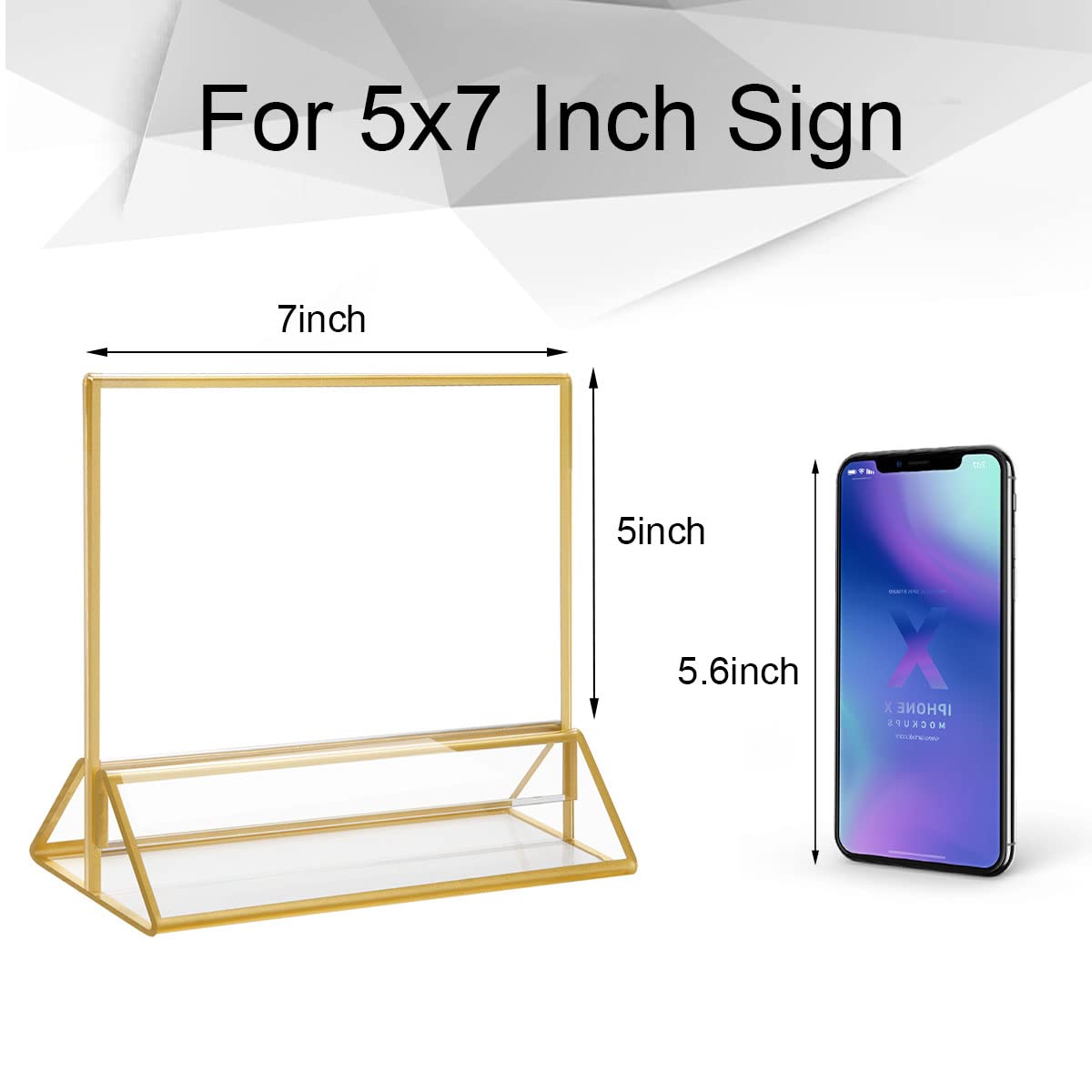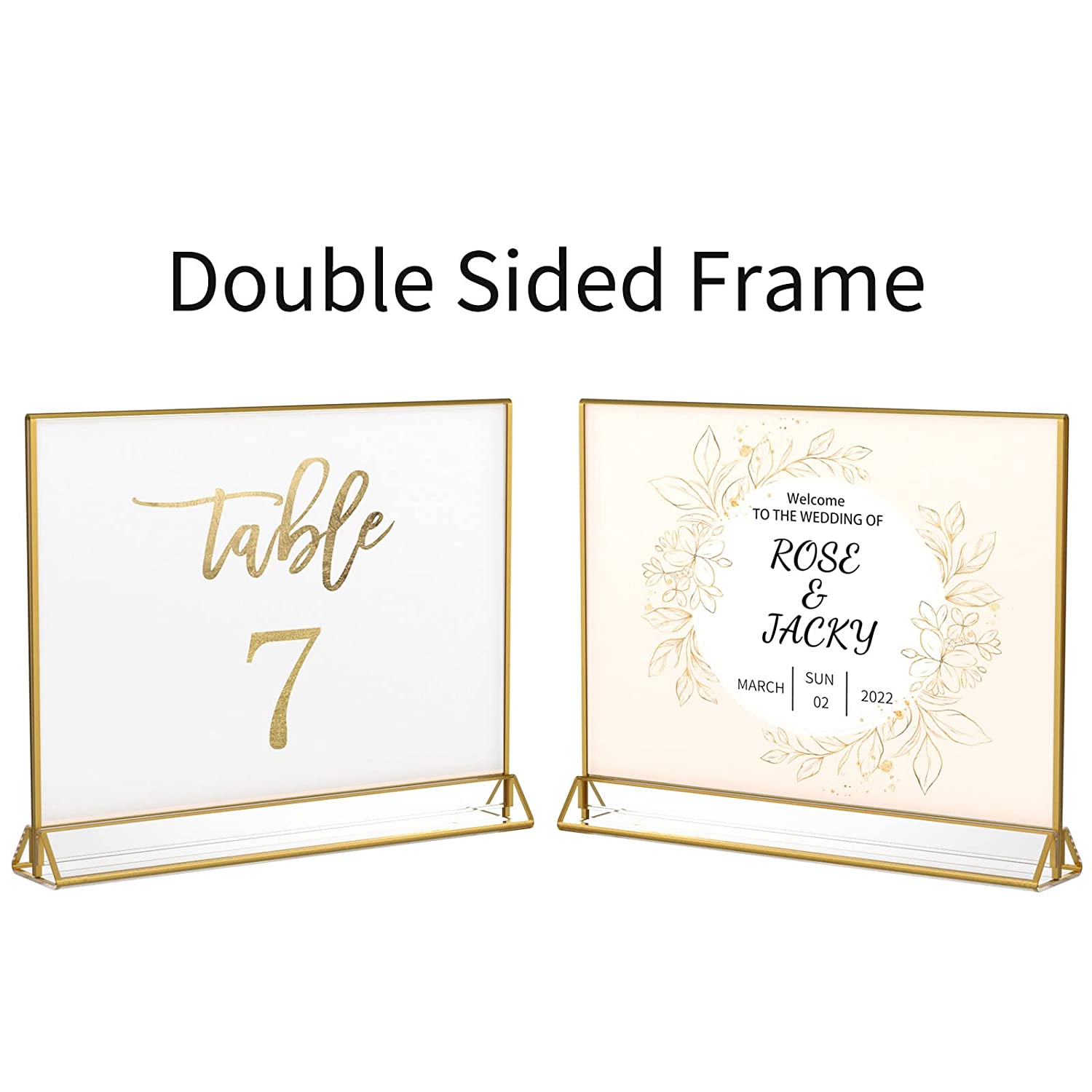 NIUBEE 6Pack 7 x 5 Horizontal Clear Acrylic Sign Holder with Gold Borders, Double Sided Table Menu Stands Picture Frames for Wedding Table Numbers, Restaurant Signs, Photos and Art Display