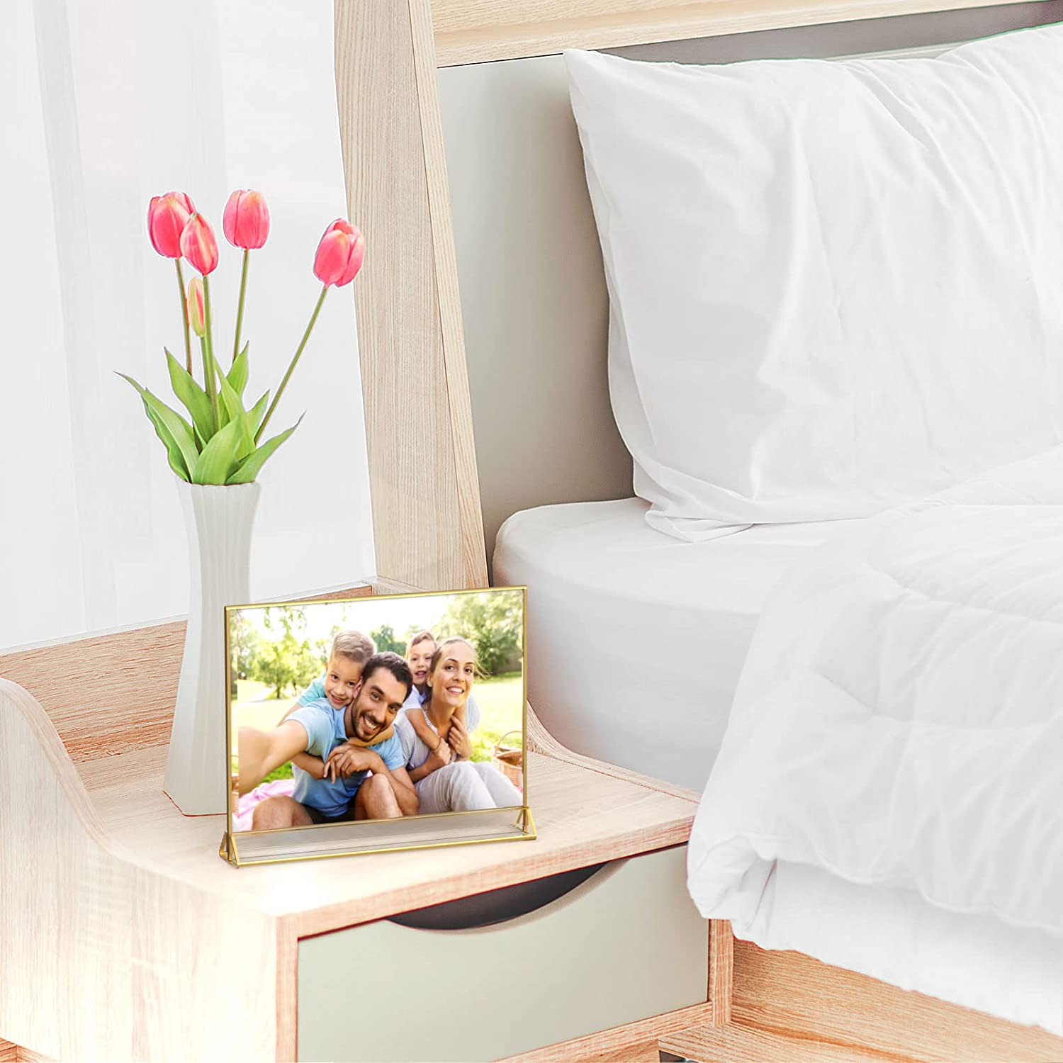 • PREMIUM CRYSTAL SUPER CLEAR ACRYLIC - Like other NIUBEE acrylic frames, this desktop picture frame is also used from high-quality acrylic, not a fragile, cheap plastic. Built with 4mm thick gold bolder and horizontal stand, it is solid and stable in landscape positions on table.