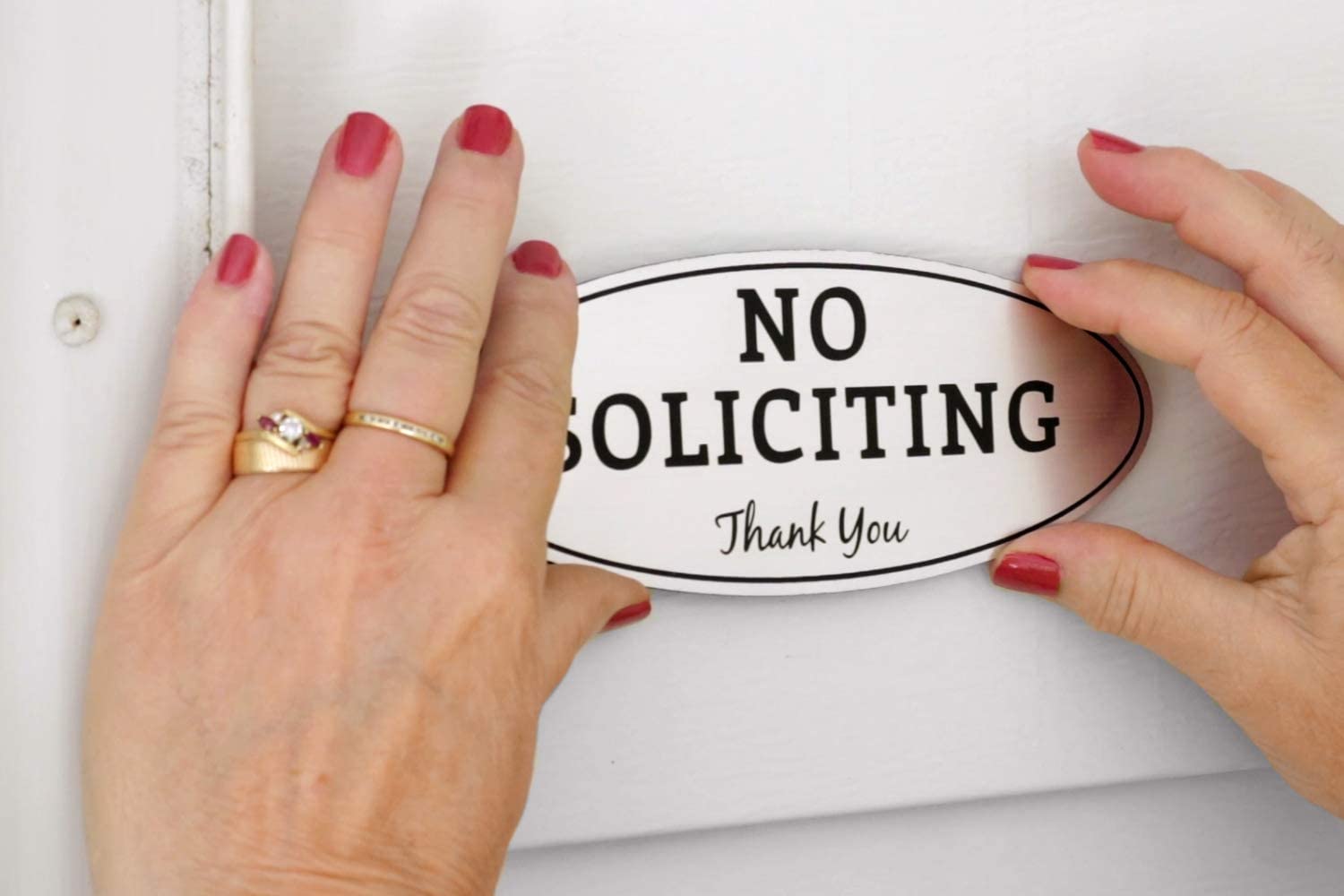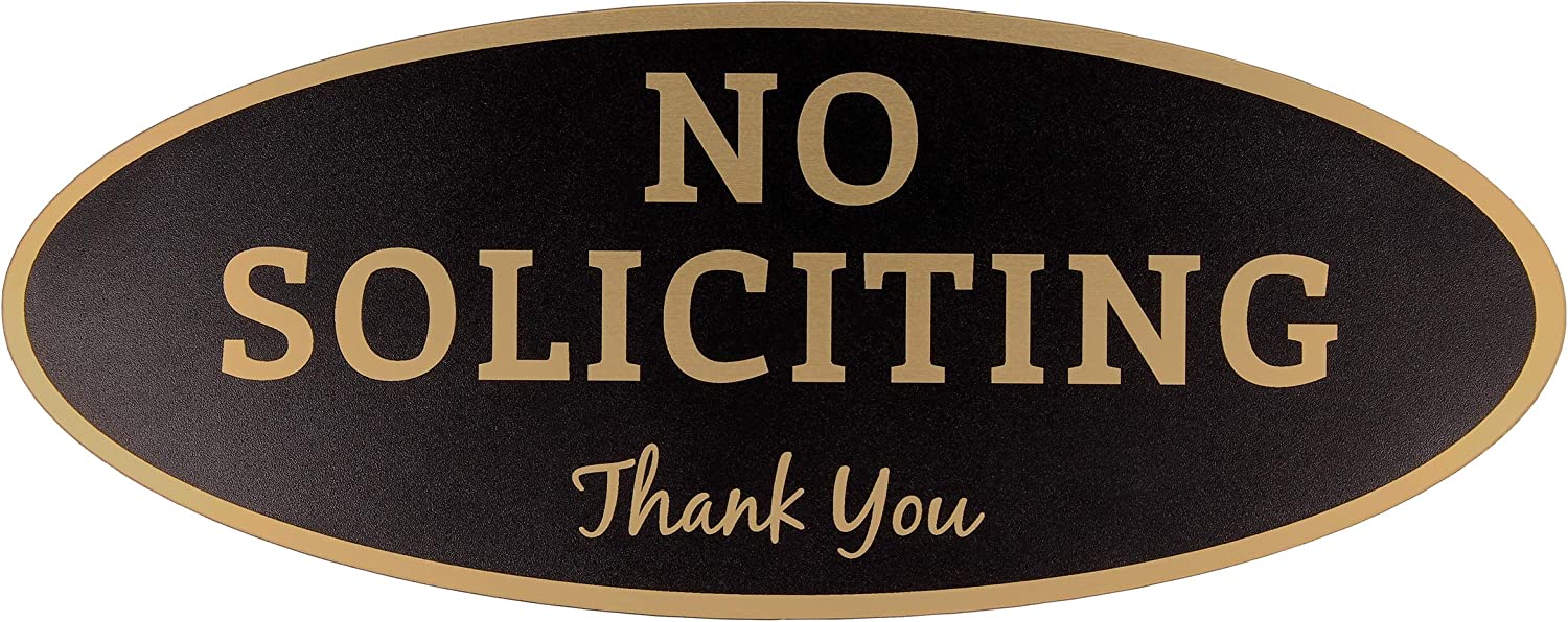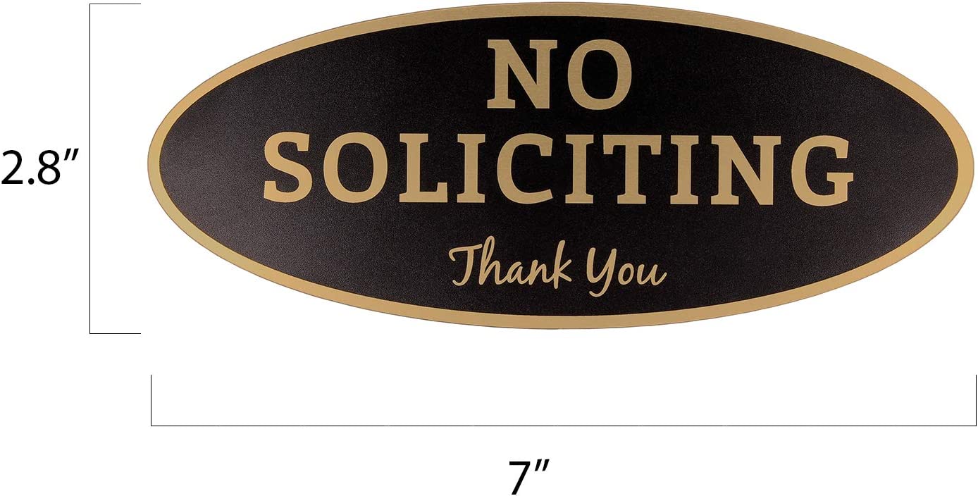 No Soliciting Sign – Digitally Printed Indoor/Outdoor Sign – Durable UV and Weather Resistant (Medium - 2.8" x 7", Black with Gold Letters)