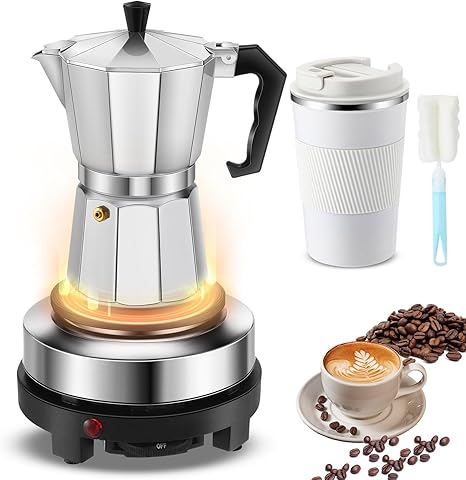 4 Pcs Coffee Pot 6 Cup Electric Espresso Coffee Maker Set, 300ml Portable Cafetera Espresso, Espresso Coffee Machines, Electric Moka Pot with Detachable Base, Coffee Gift for Home Travel