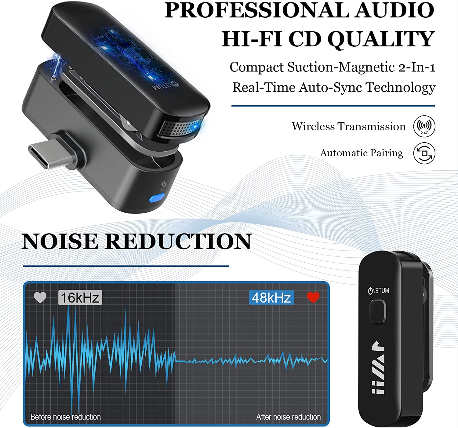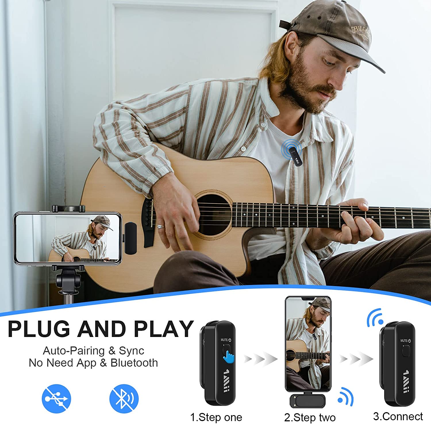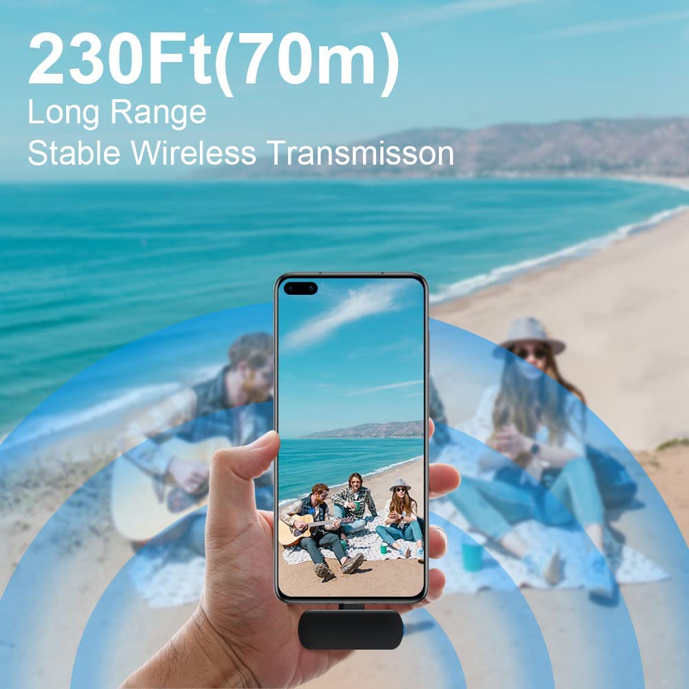 1mii Wireless Lavalier Microphone, 230FT Clip on Lapel Mic for Android Phone, iPhone, Laptop, Zero Latency, Long Range for Video Recording, Tiktok, Facebook, YouTube Live Stream, Interview
