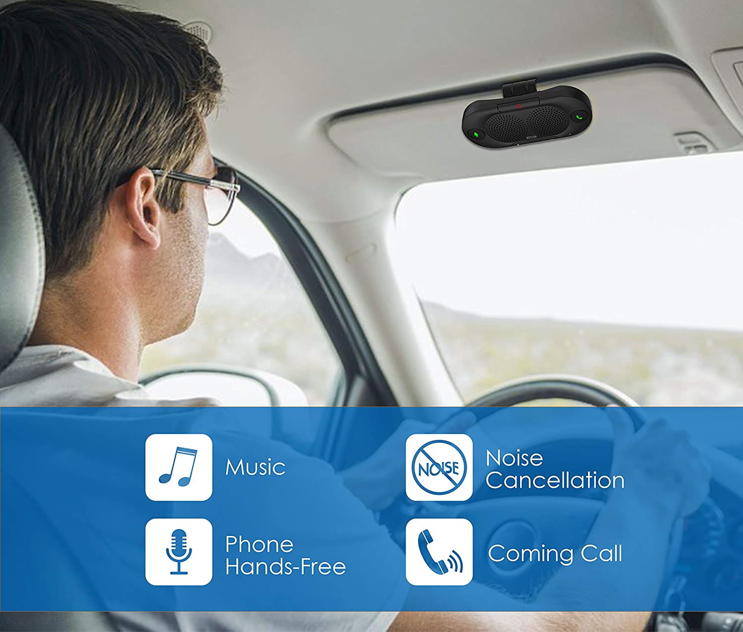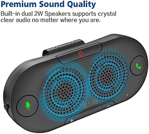 Besign BK06 Bluetooth 5.0 in Car Speakerphone with Visor Clip, Wireless Car Kit for Handsfree Talking, Motion Auto On, Siri Google Assistant Support, Dual 2W Speakers