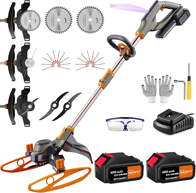 13.5-Inch Cordless String Trimmer & Edger, ___2 x 21V 4.0Ah Electric Brush Cutter Battery Powered___, with 2 x Saw Blades, 2 x Metal Blades, 20x Grass Cutting line