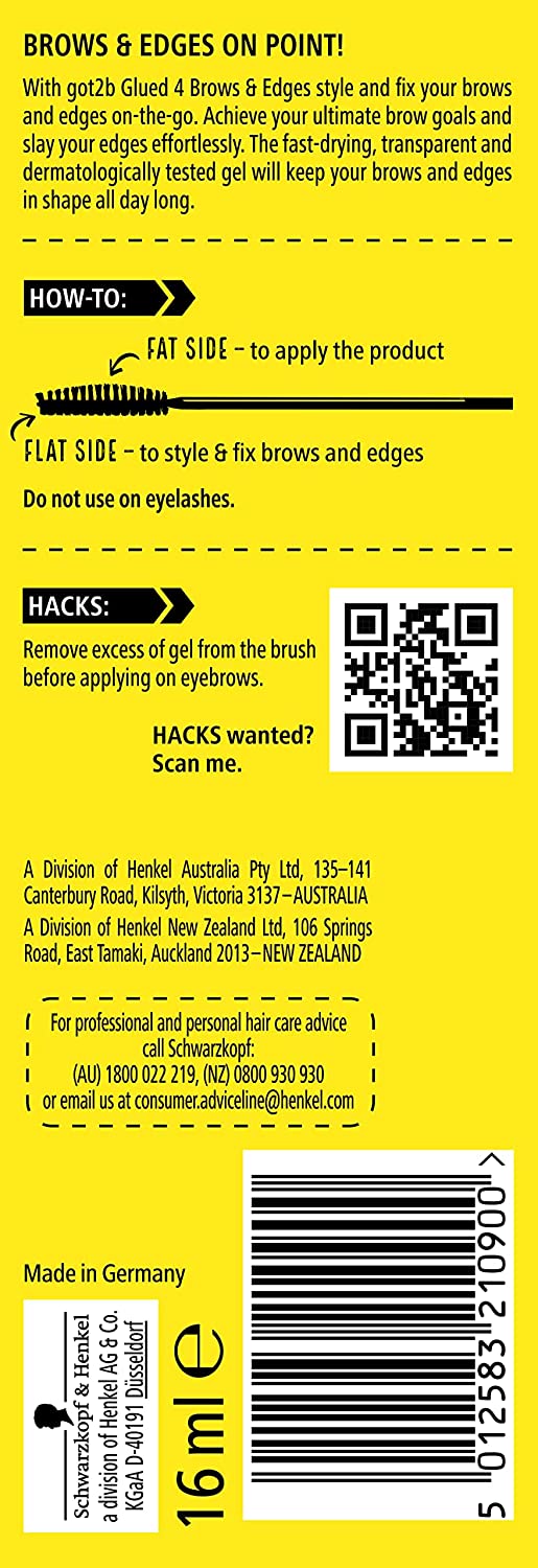 Got2B Schwarzkopf Glued for Brows & Edges 2 in 1 Wand Gel, For Laying Edges and Styling Brows, 72hr Hold, No White Residue or Stickness, Vegan, Silicone Free, Alcohol Free, 16 ml (Pack of 1)