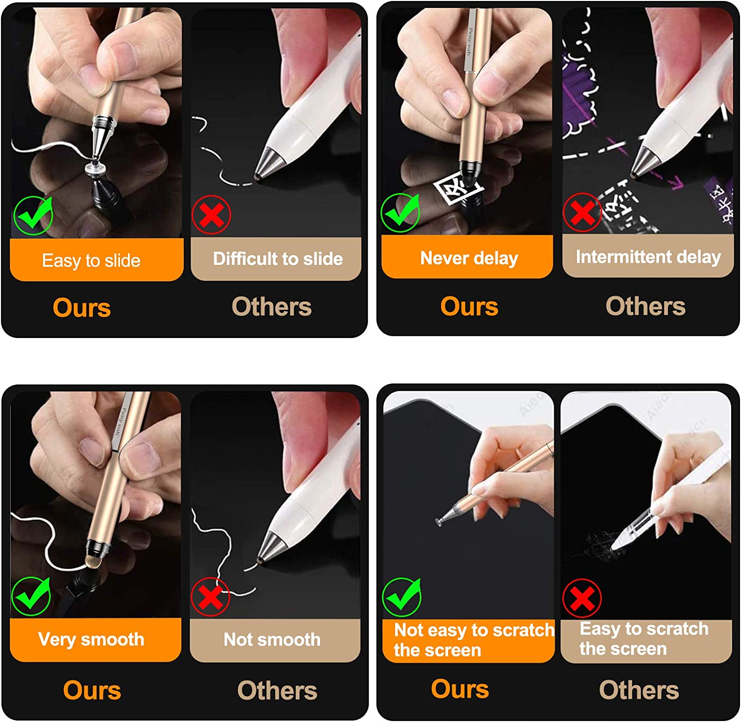 • ✔【BRANDED NEW DESIGN & DIY】 -- The tablet pens for touch screen is made of high grade copper material, NOT aluminum alloy, handy comfortable feeling, solid, durable and corrosion resistance. The design is adapted humanized one. You can DIY various combinations, disassemble at you will which gives you more accurate pen writing/drawing/touching experience.
