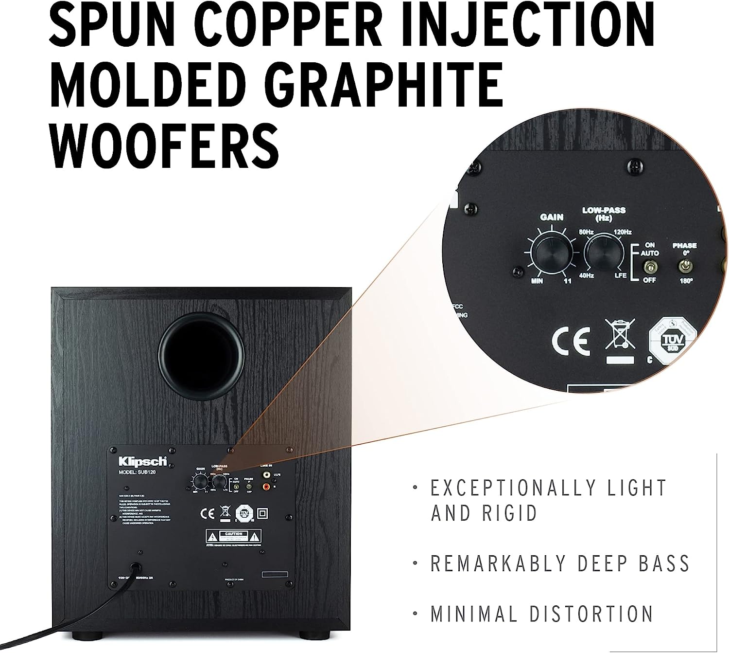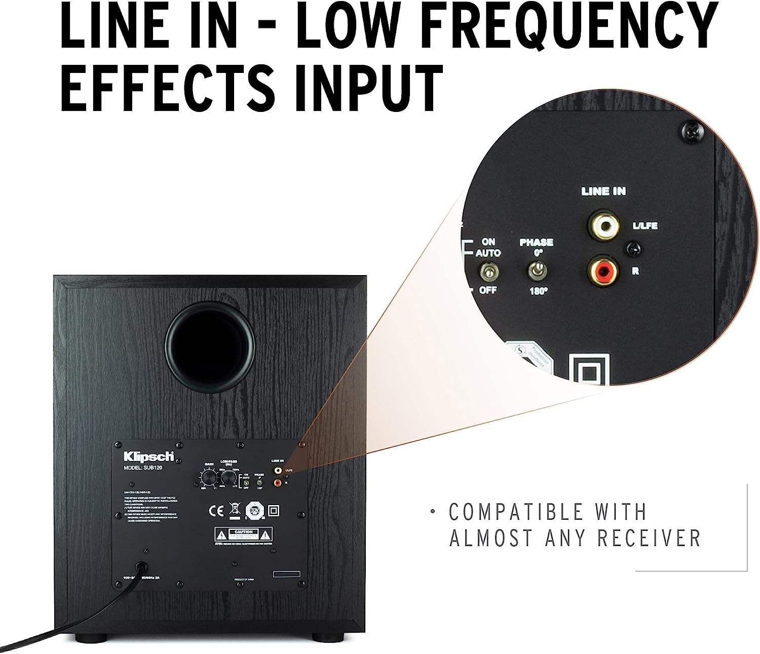 Klipsch Synergy Black Label Sub-120 12” Front-Firing Subwoofer with 200 Watts of continuous & 400 watts of Dynamic Power, and Digital Amplifier for Powerful Home Theater Bass in Black