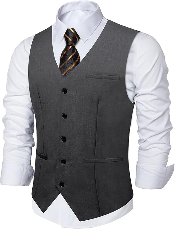 DiBanGu Men's Suit Vest Formal Wedding Slim Fit Single-Breasted Sleeveless V-Neck 2 Pockets Solid Dress Waistcoat Prom Tuxedo