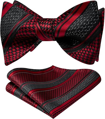 HISDERN Bow Ties for Men Striped Bowties Men's Self Tie Bowtie Handkerchief Formal Tuxedo Wedding Bowties and Pocket Square