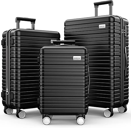 BEOW Luggage Sets 3 Piece, Expandable Luggage Sets with Spinner Wheels, TSA Lock Suitcases with Carry on Luggage (Black, 20‰۝24‰۝28‰۝)