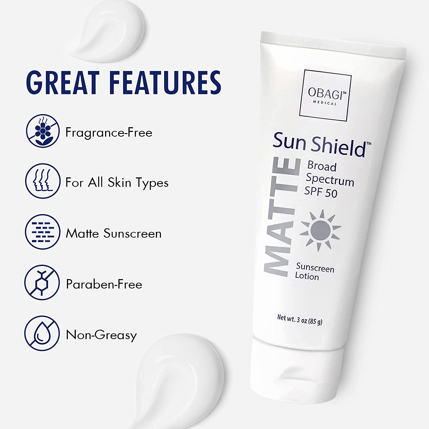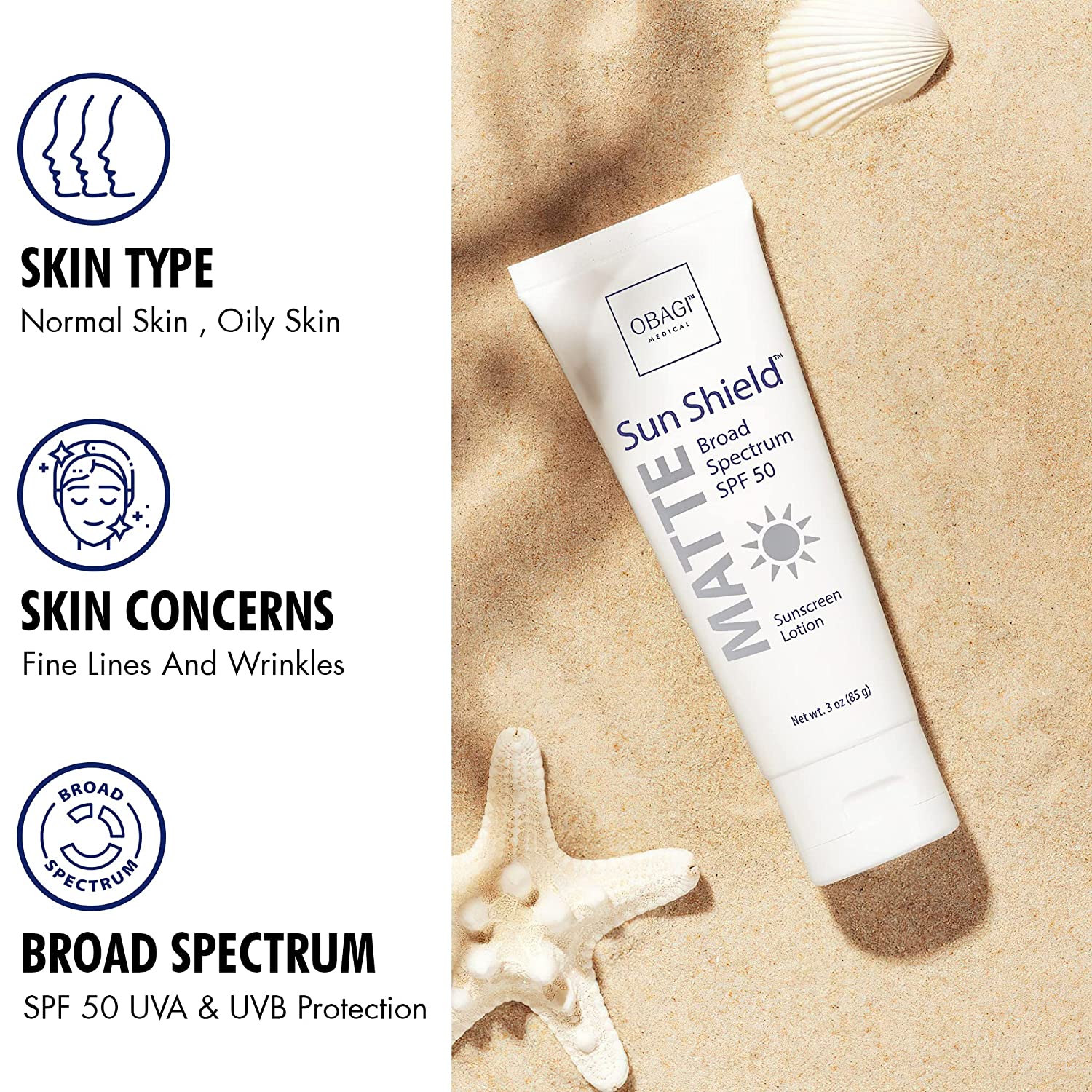 Obagi Sunscreen Sun Shield Matte Broad Spectrum SPF 50 Sunscreen, combines UVB absorption and UVA protection, 3 oz