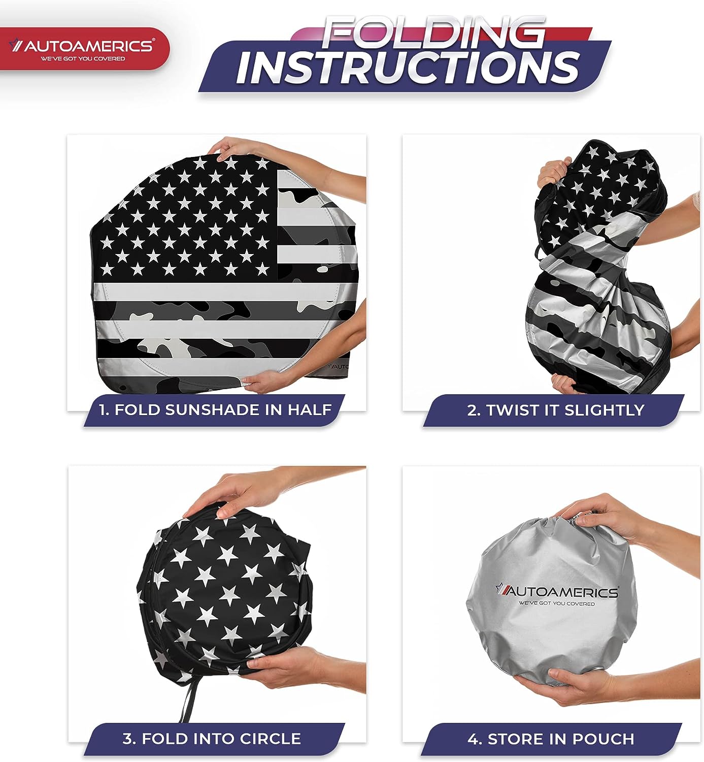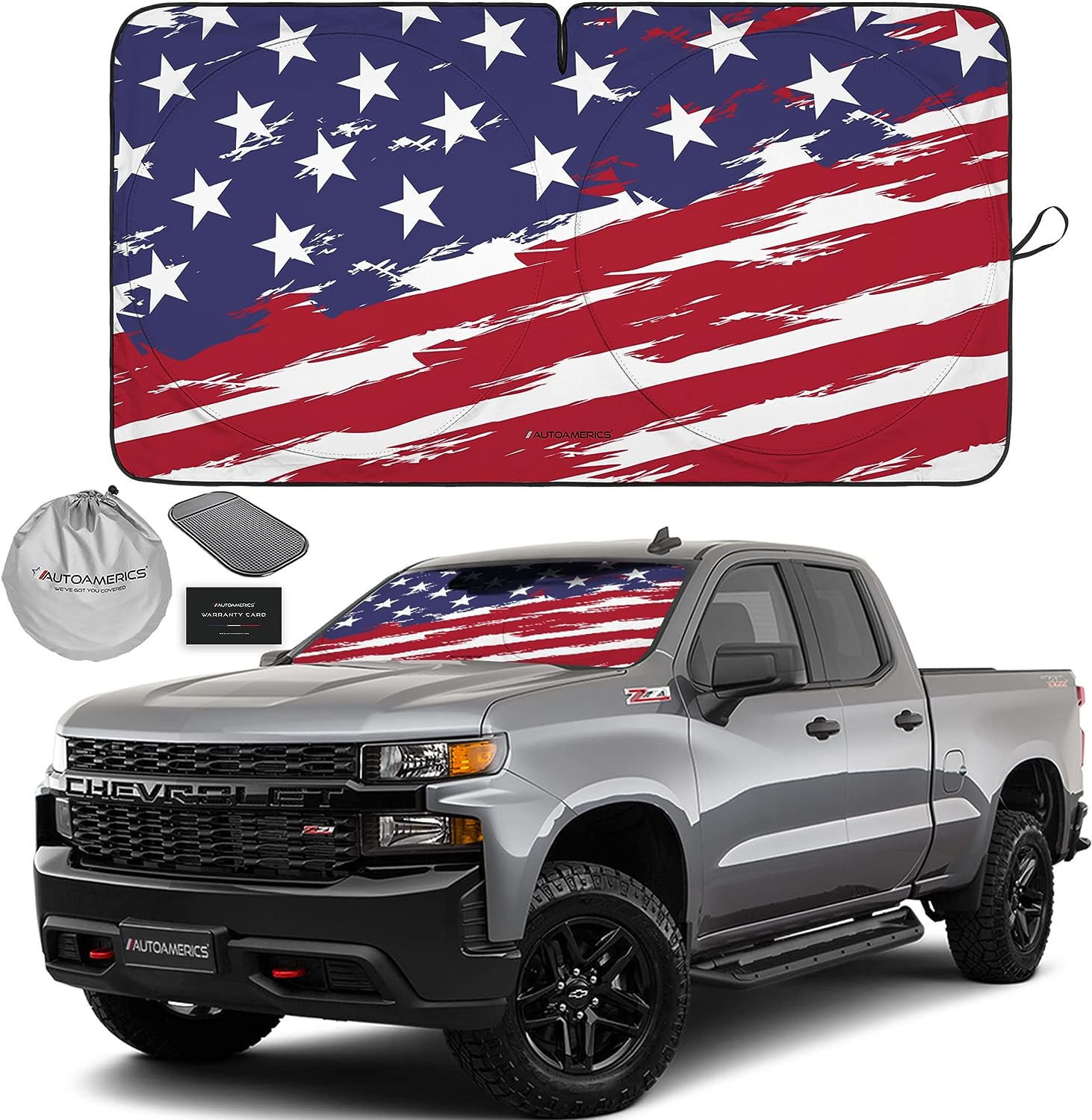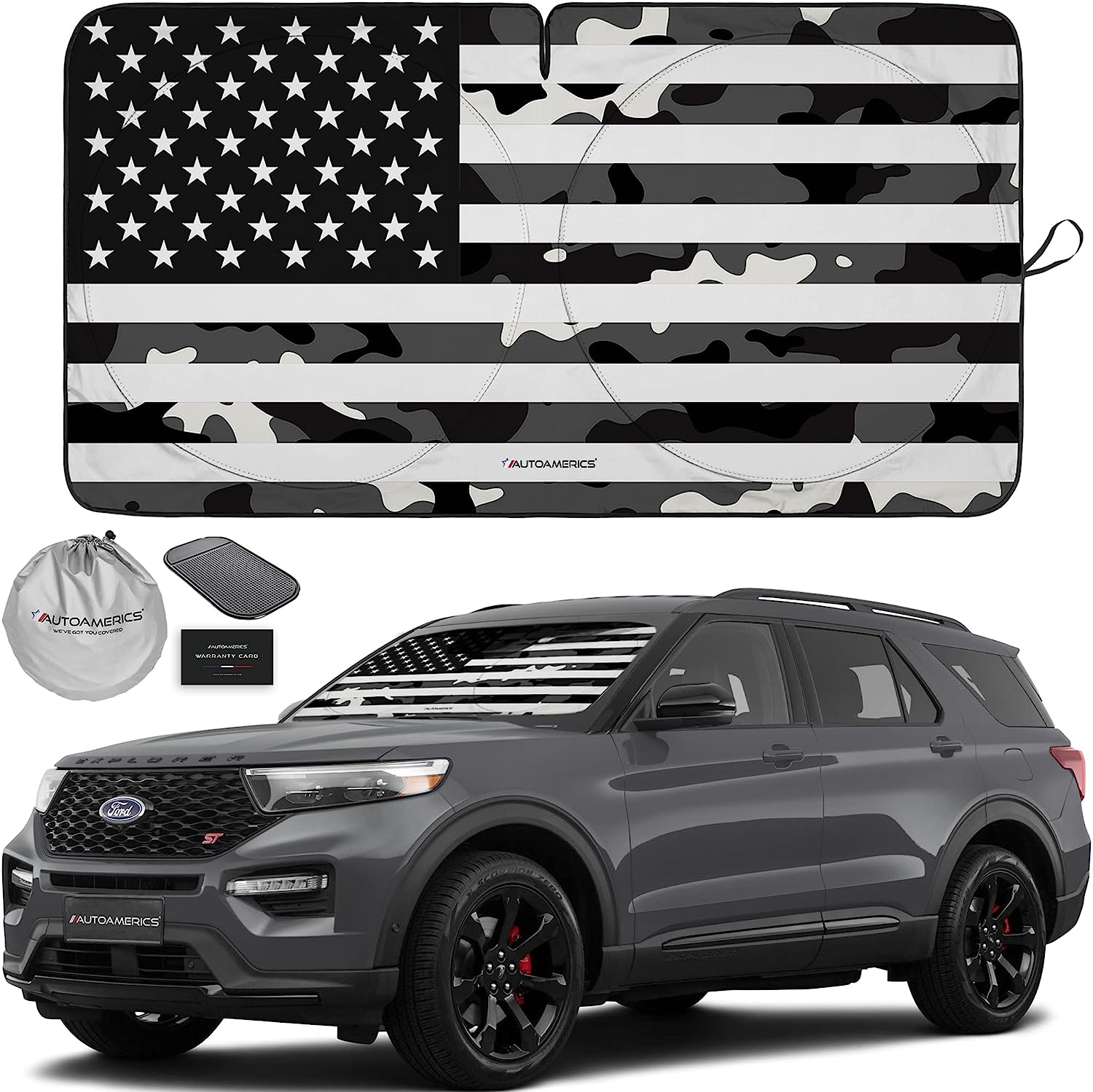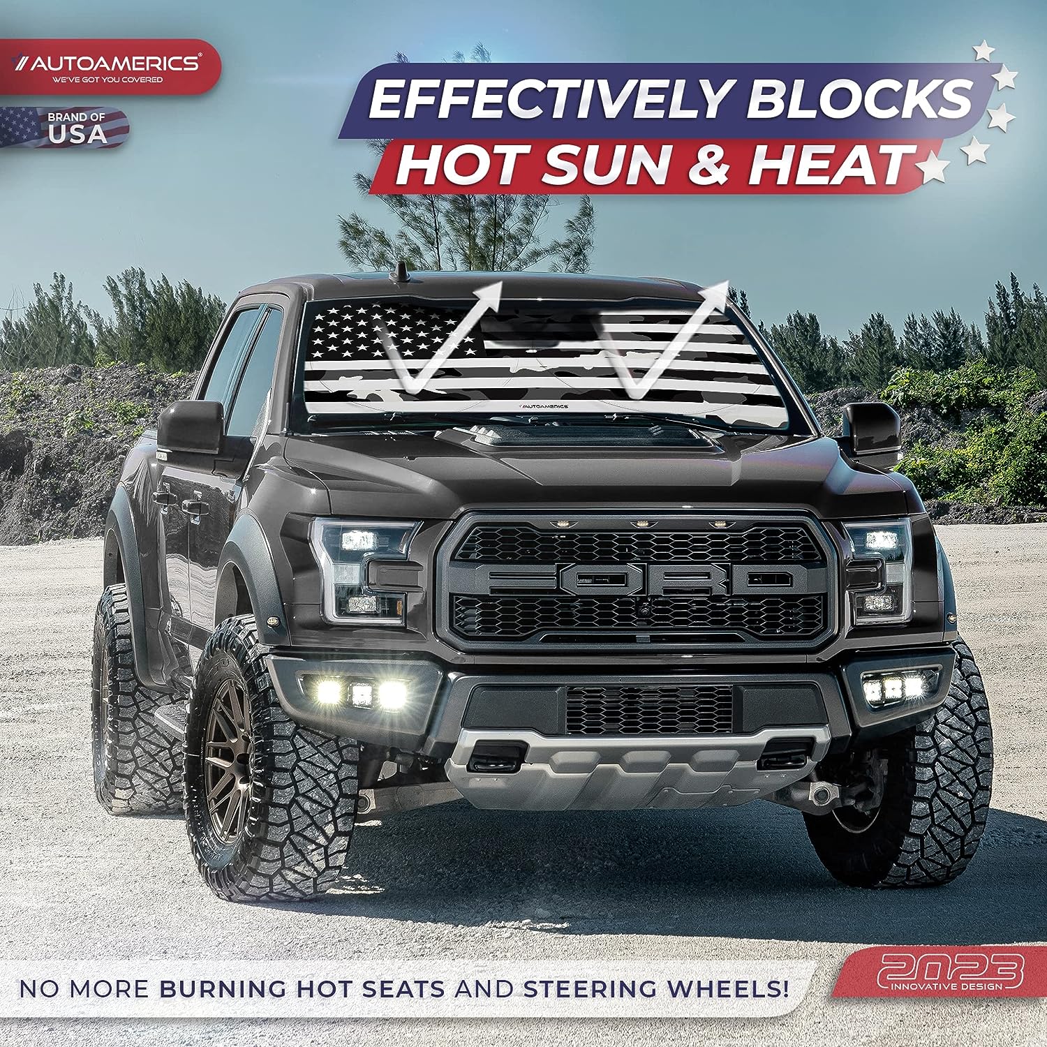 Autoamerics 1-Piece Windshield Sun Shade B&W American Flag USA Patriotic Design - Foldable Car Windshield Sun Shade Fits Easily to SUV & Truck vehicles - UV Ray Blocker Keeps Your Vehicle Cool - Large