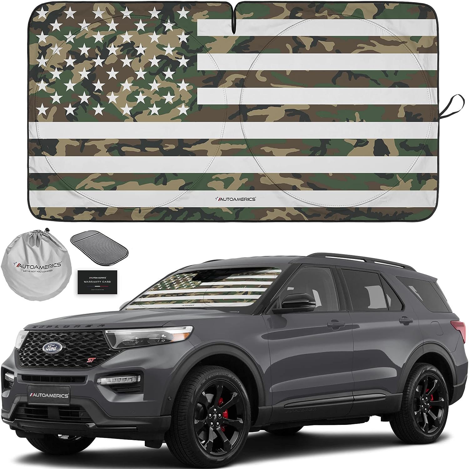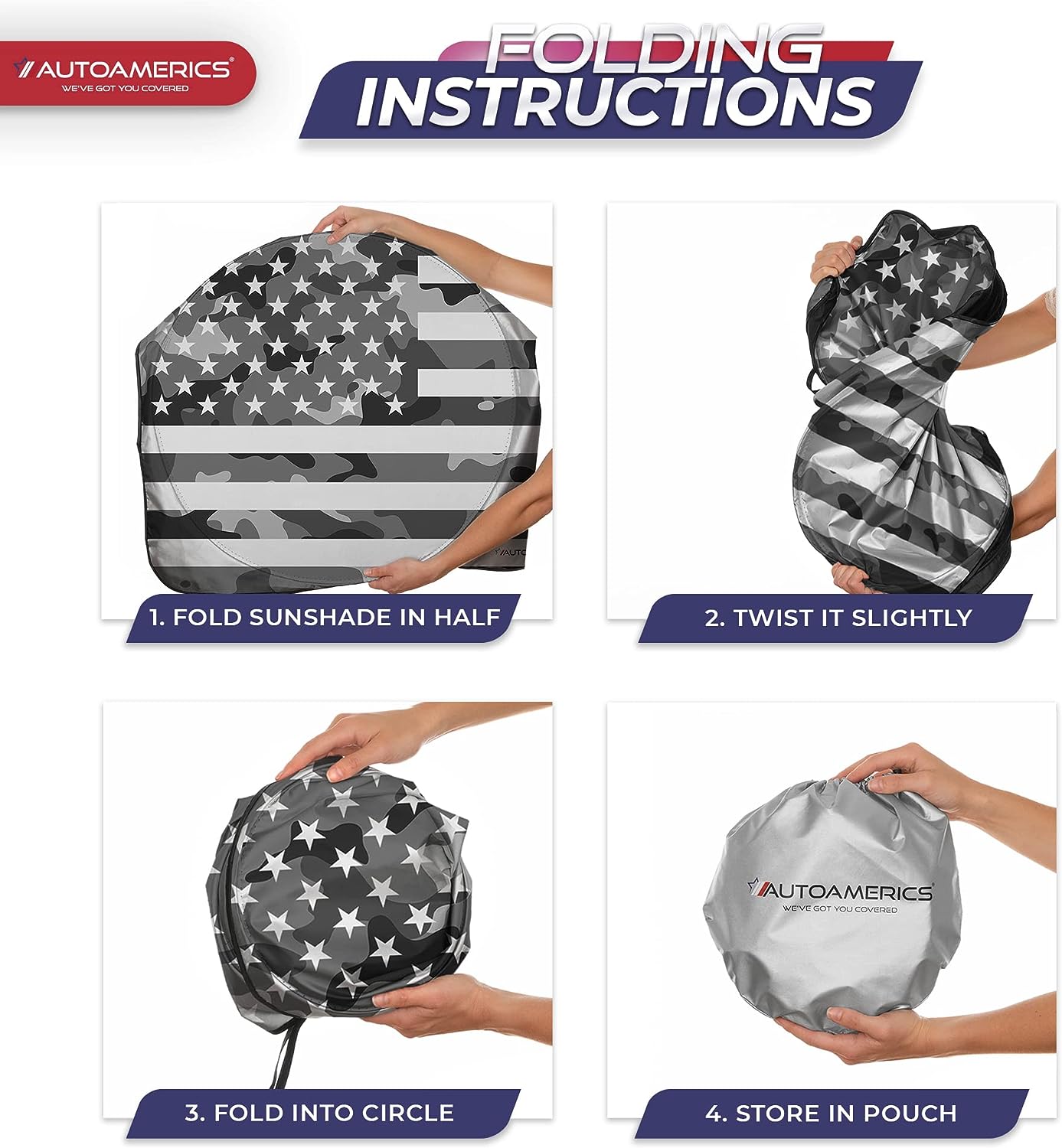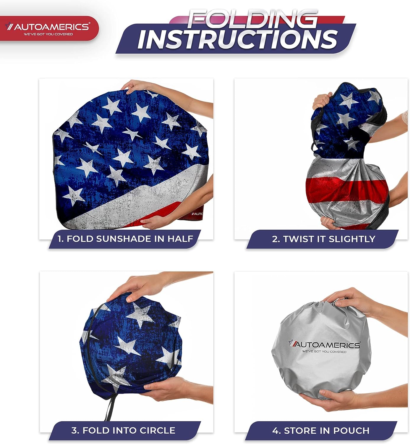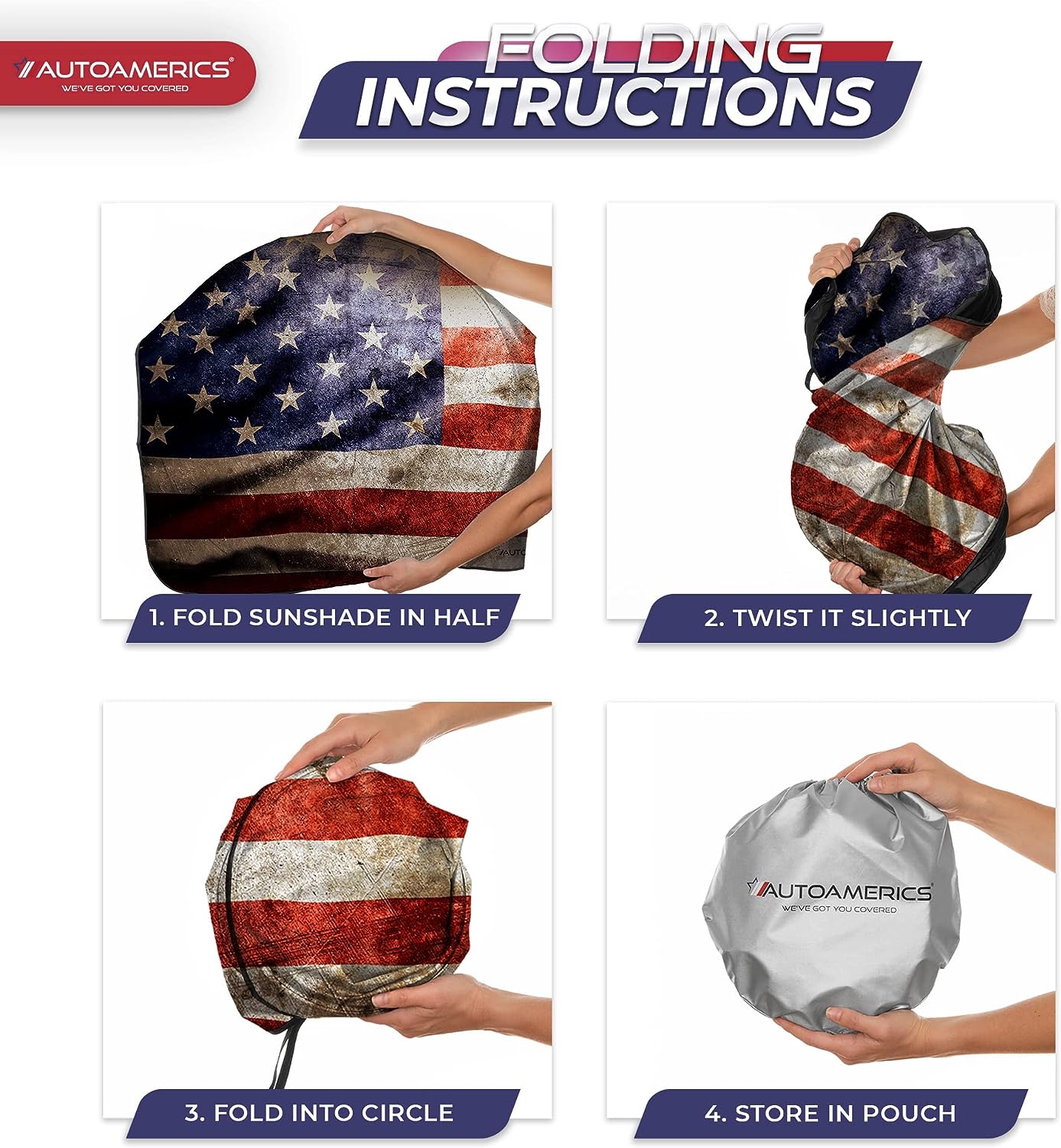 Autoamerics 1-Piece Windshield Sun Shade B&W American Flag USA Patriotic Design - Foldable Car Windshield Sun Shade Fits Easily to SUV & Truck vehicles - UV Ray Blocker Keeps Your Vehicle Cool - Large