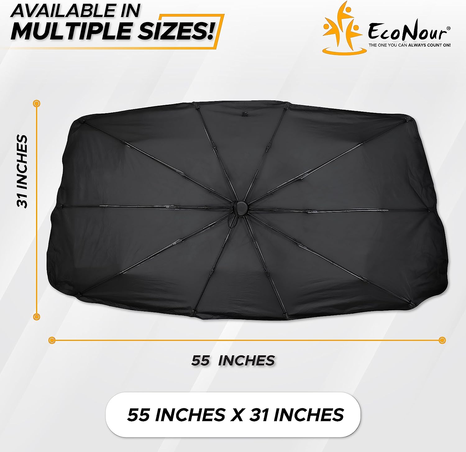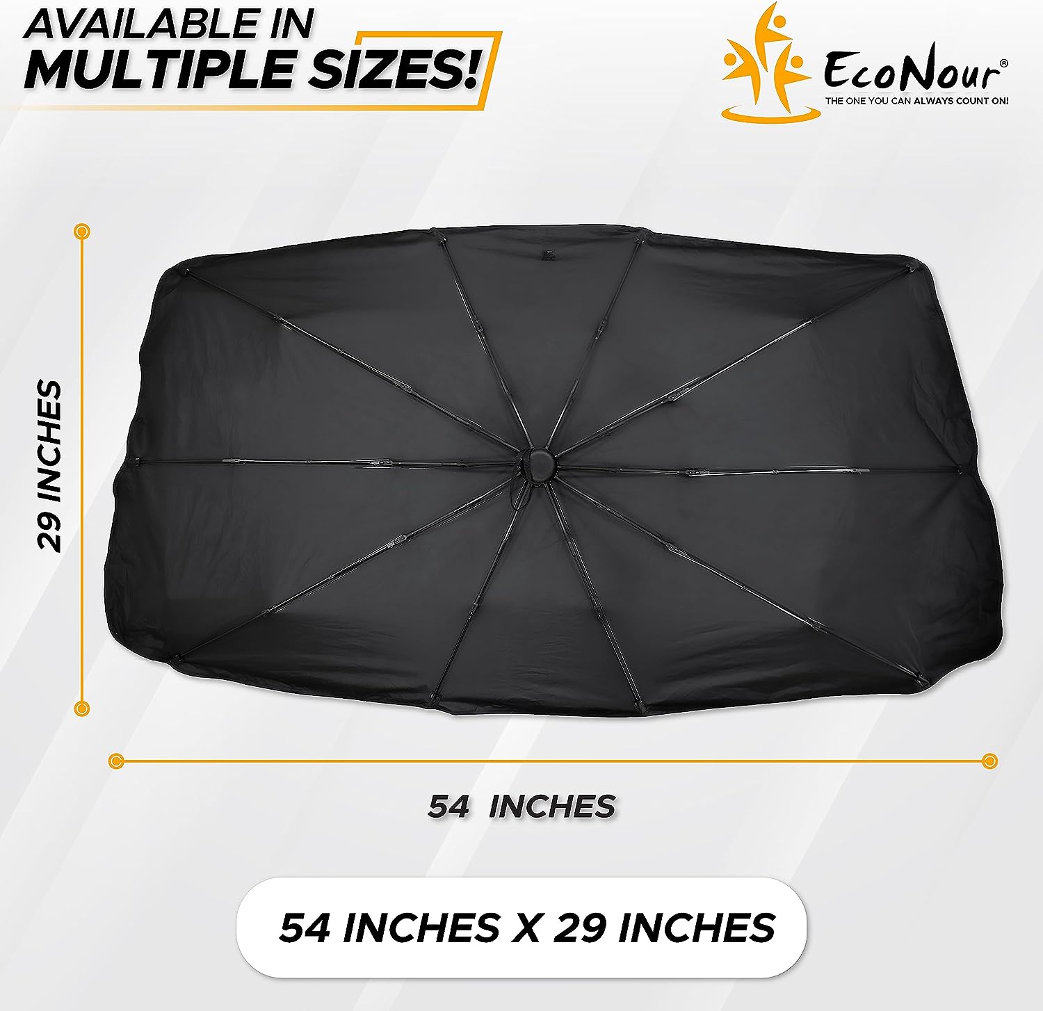 EcoNour Car Windshield Sunshade | Foldable Reflector Umbrella Sunshade for Cars, Blocks UV Rays Sun Visor Protector Sunshade to Keep Your Vehicle Cool and Damage Free (Medium 54 inches x 29 inches)