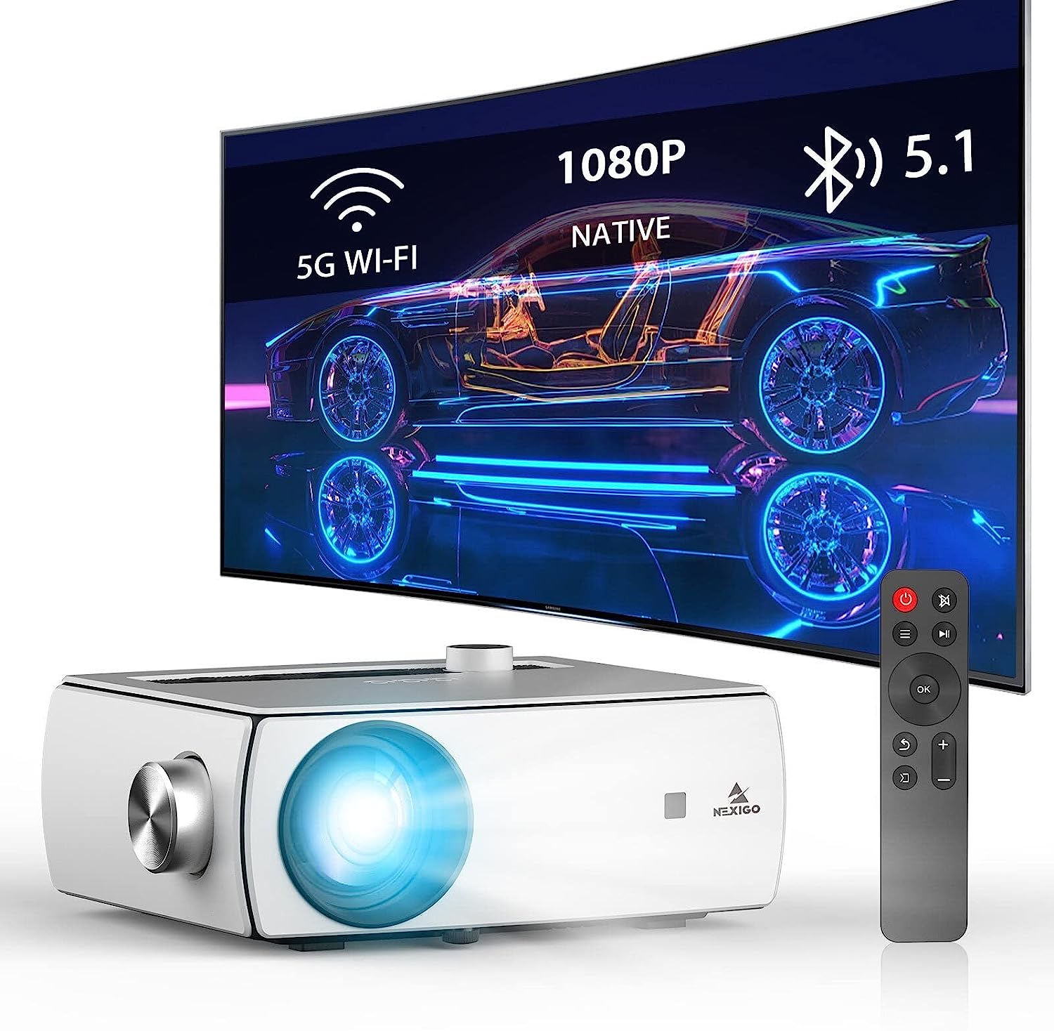 NexiGo WiFi Bluetooth Projector PJ10, 300ANSI, Native 1080P Movie Projector, Dolby_Sound Support, Remote, Compatible with Phone, Computer, HDMI, USB, AV Interfaces