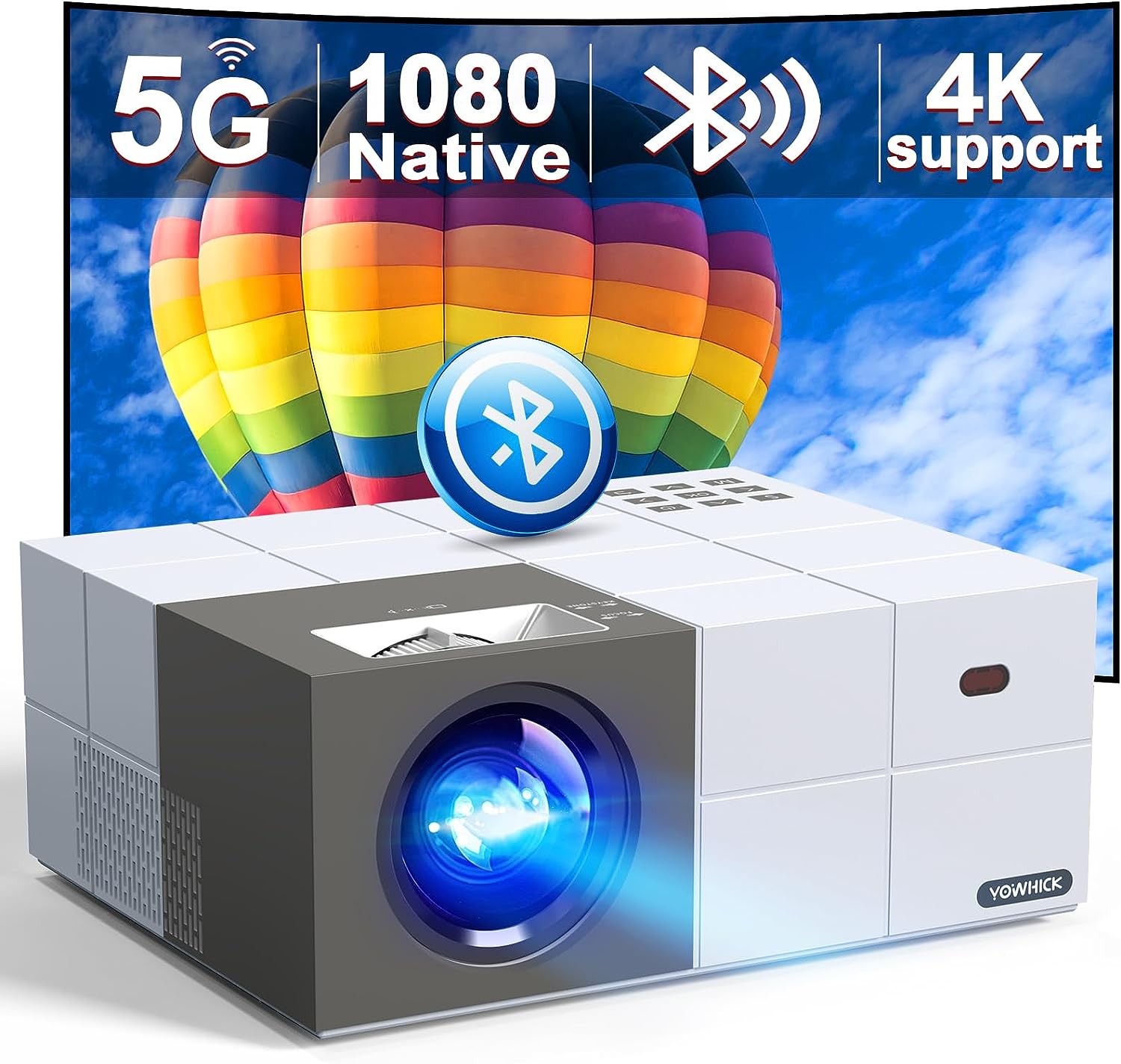 YOWHICK Native 1080P 5G WiFi Bluetooth Projector 4K Support, Outdoor Movie Projector with Screen and 300" Display, Video Projector Compatible w/iOS/Android/Win/TV/PS5, Grey