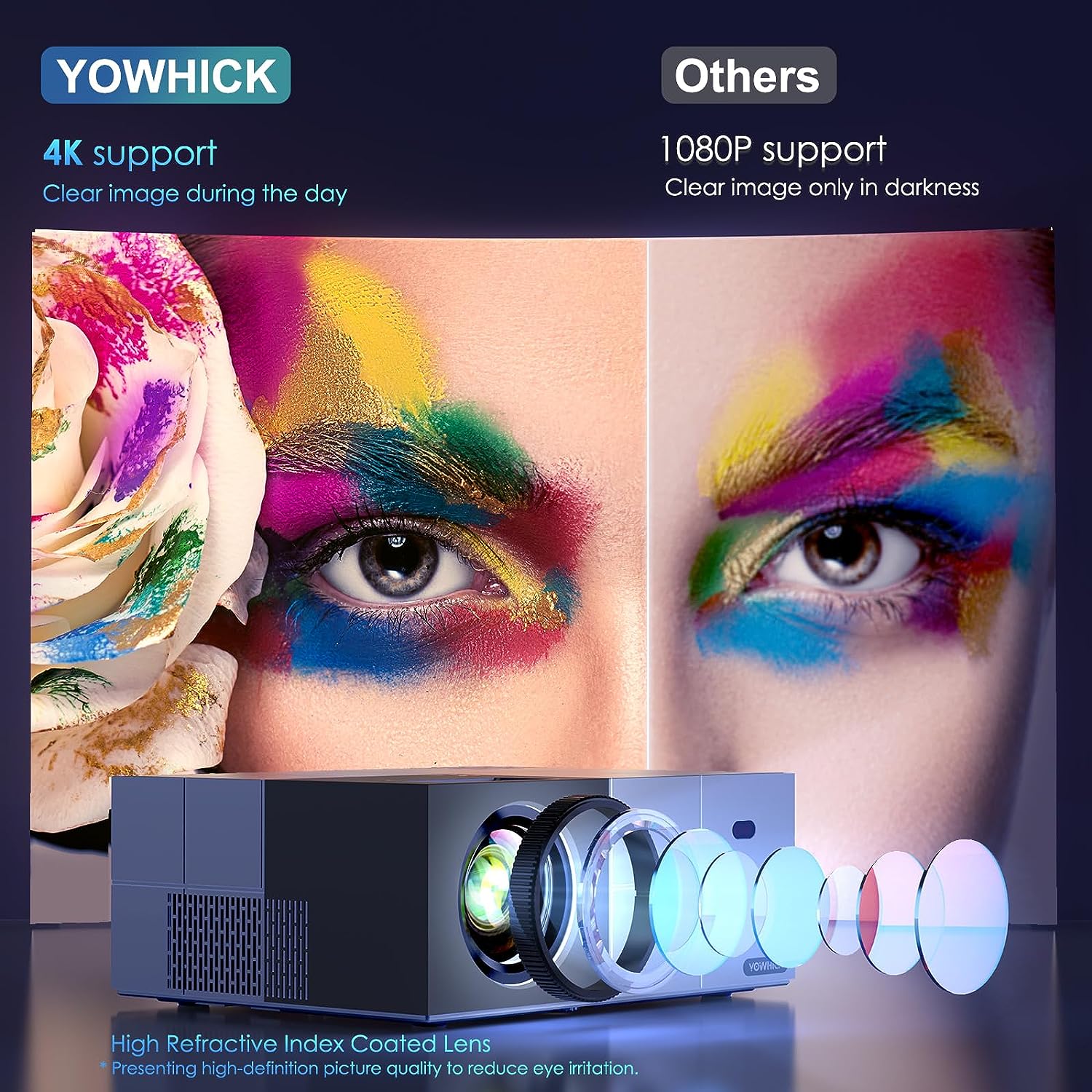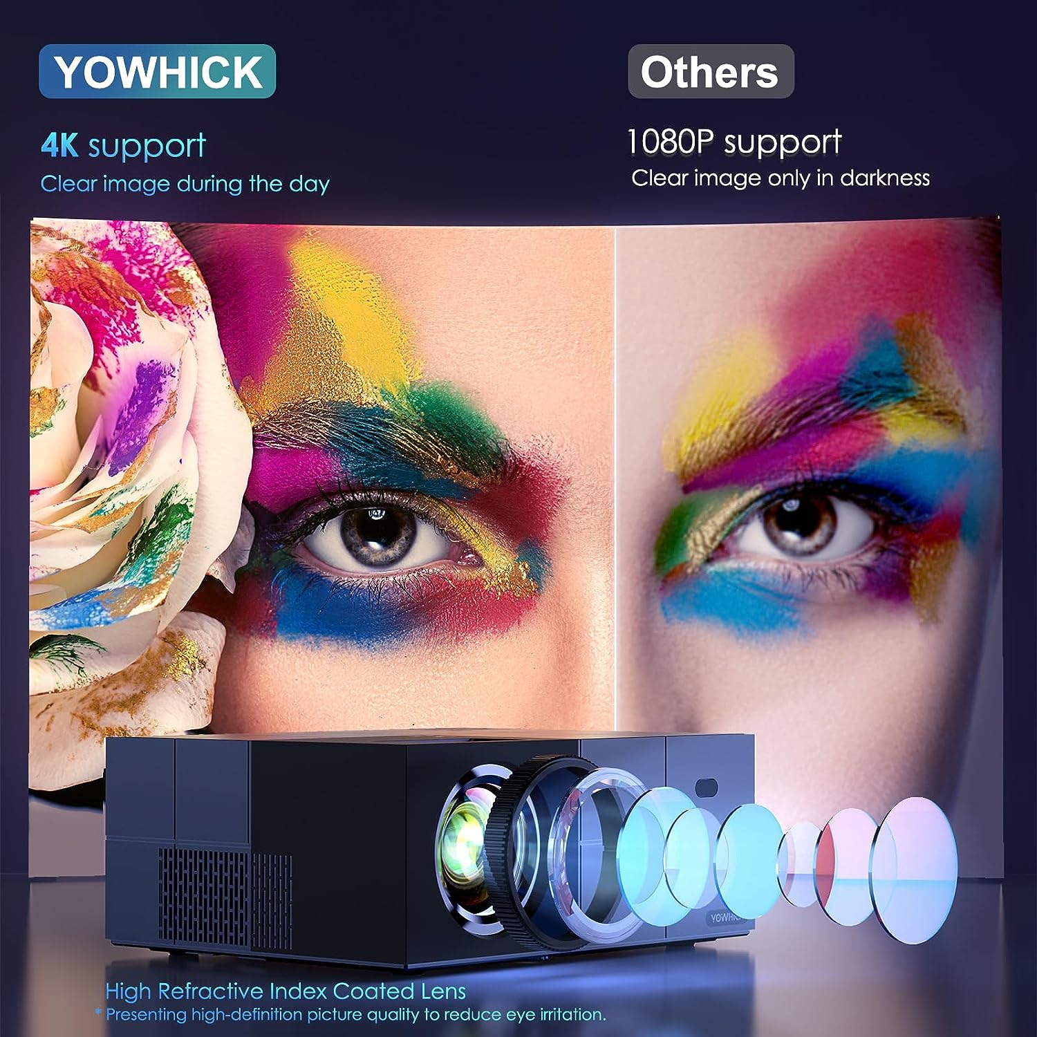 • 【17 Million Color Range】YOWHICK movie projector provides much brighter、clearer、more colorful image than other 1080P projectors, the color gamut is up to 80% of NTSC and provide up to 17 million color ranges, can display 100% RGB color signals for each image. (100 inches projector screen included)