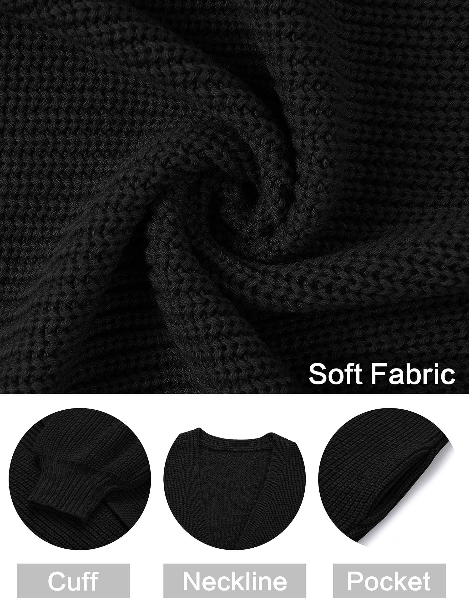 MEROKEETY Women's 2024 Fall Open Front Long Lantern Sleeve Cardigan Oversized Chunky Outwear with Pocket Black