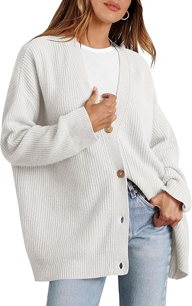 Caracilia Womens Cardigan Sweaters Oversized Button Down Long Sleeve Open Front Knitted Sweater Fall Outfits Trendy Clothes