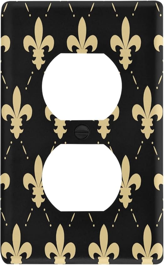 Fleur De Lis Floral Pattern Blank Device Wall Plate Gold Black Switch Plates Electrical Outlet Covers Receptacle Plug Cover Home Decor H4.53 xL2.76 inch