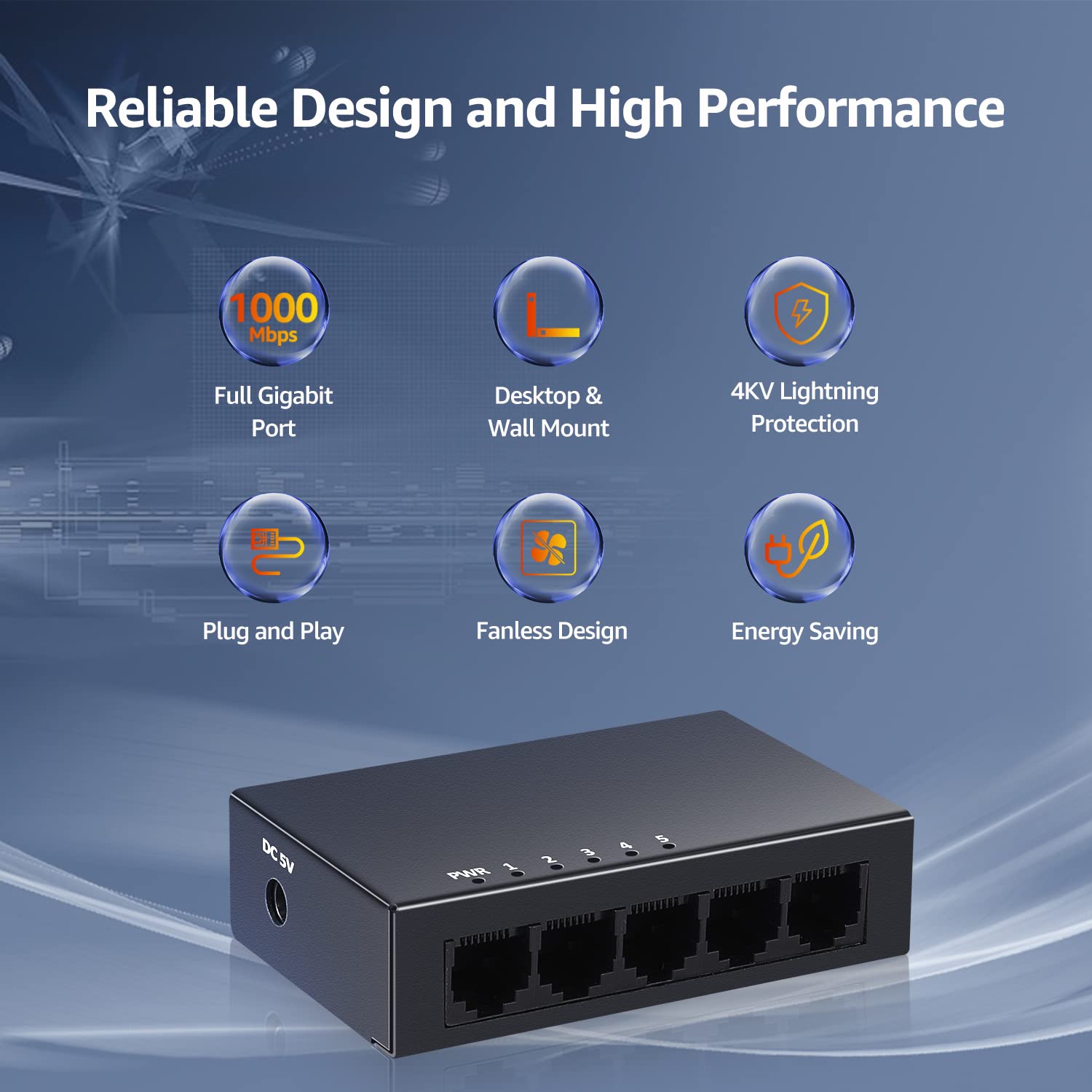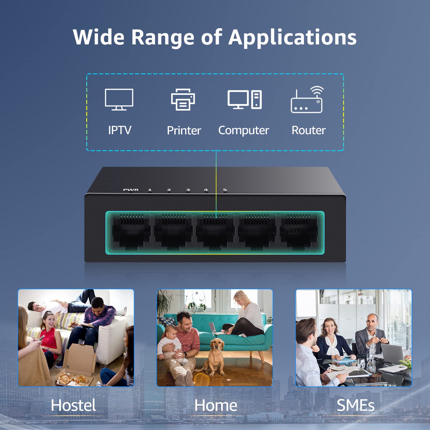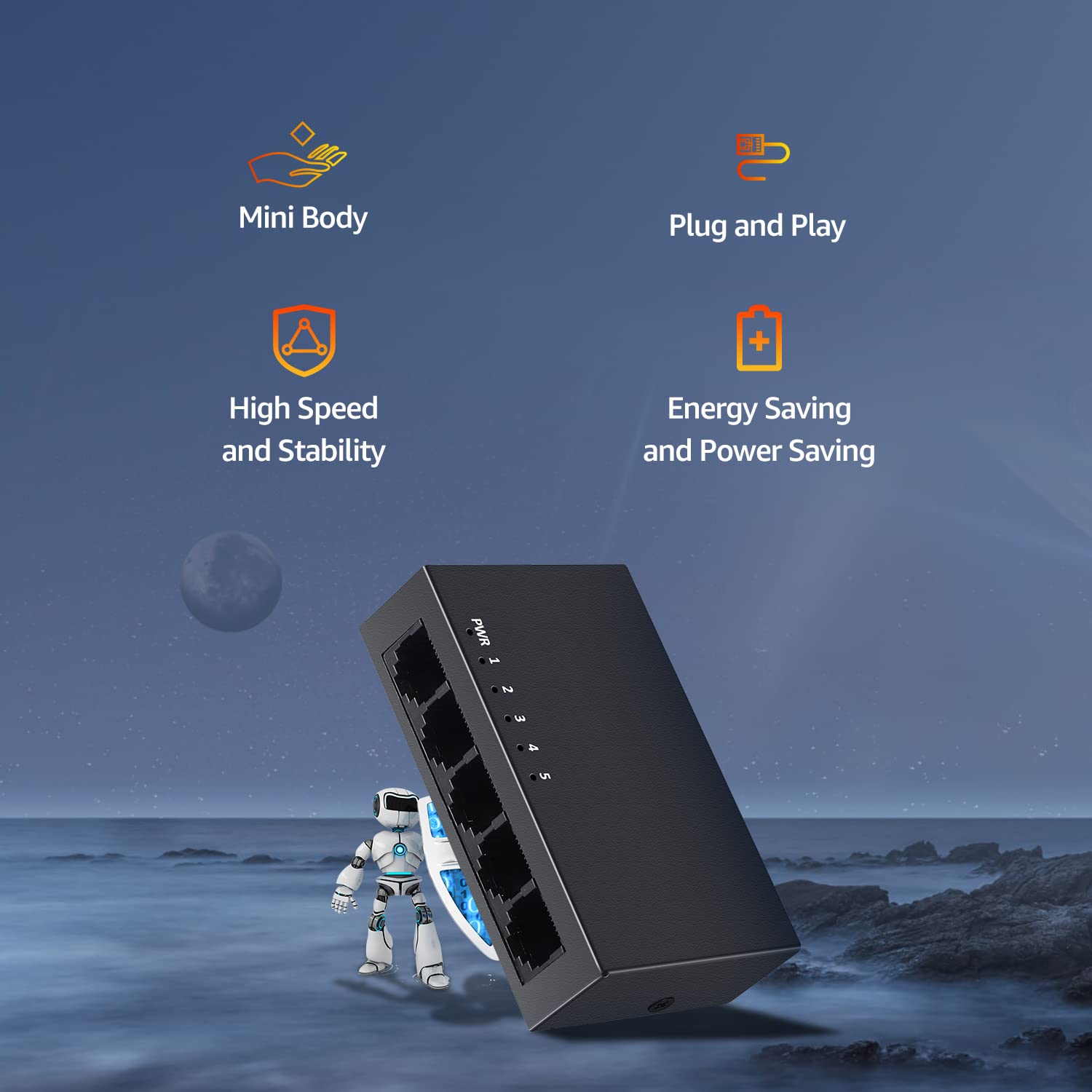 • Unmanaged Plug-and-play, easy to use and simple set up with no software or configuration needed. Supports auto MDI/MDIX and Non-Blocking Data Forward.