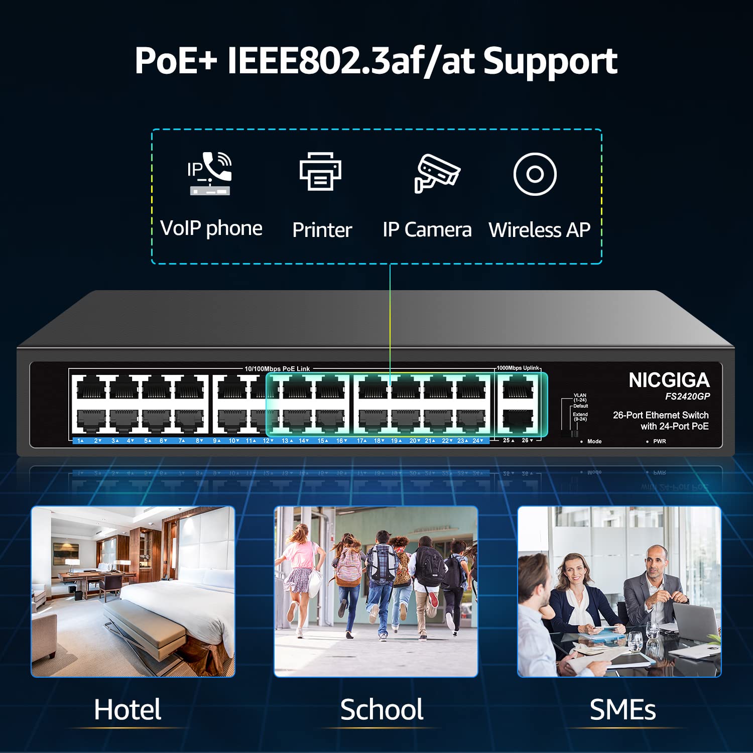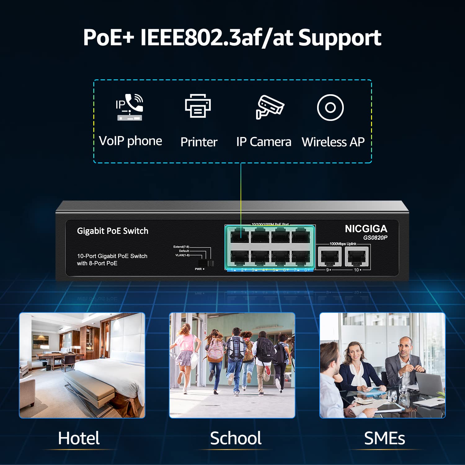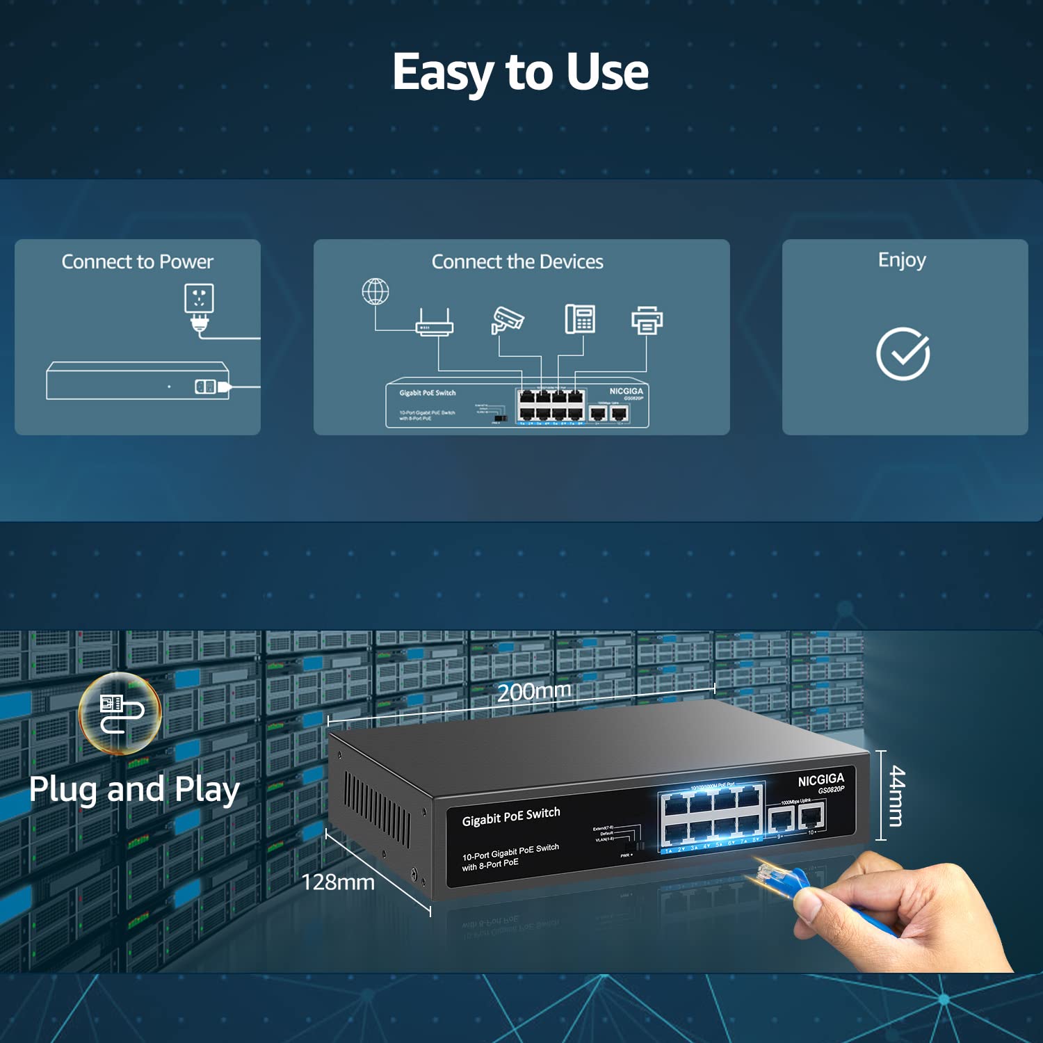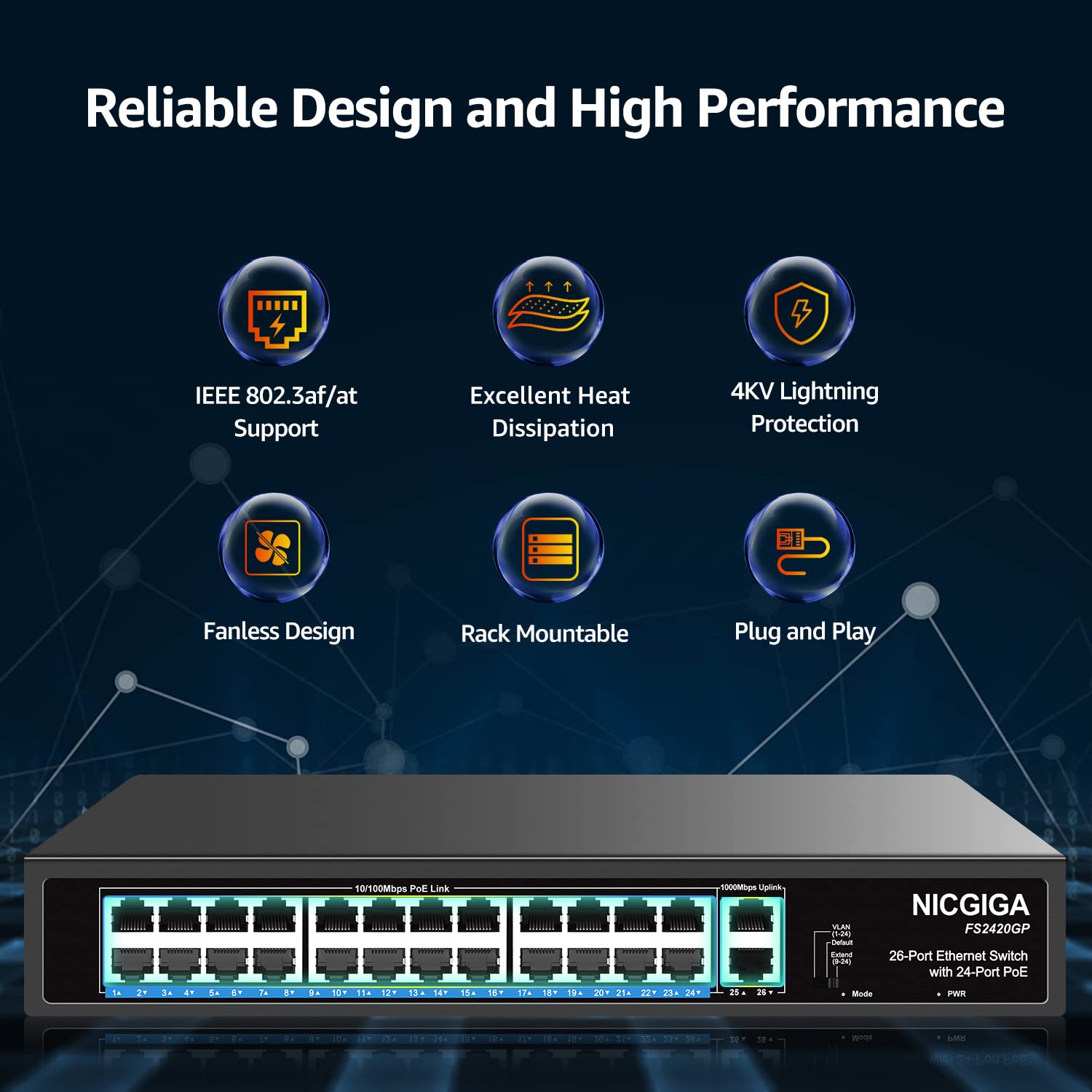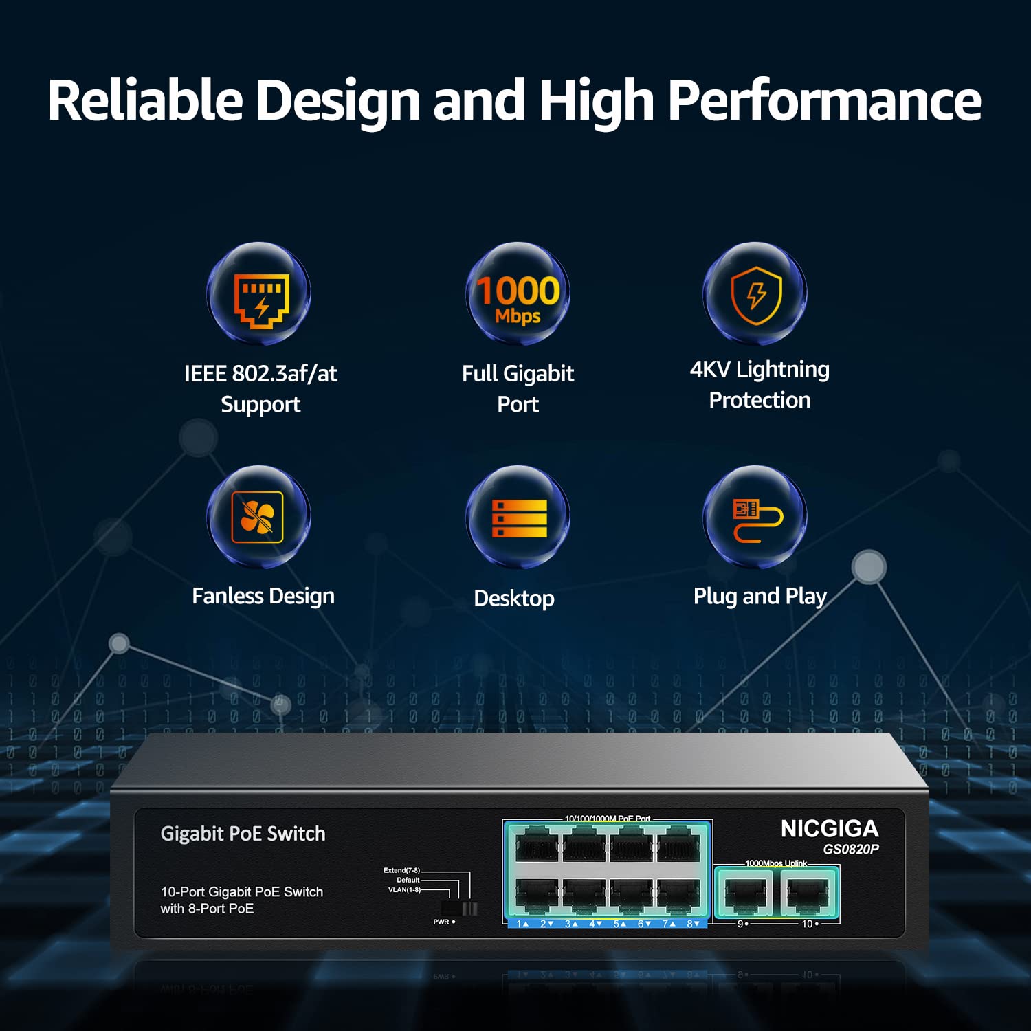 • Every NICGIGA PoE switch is rigorously tested for reliability, quality, and performance. We supply a year warranty for whole products and lifetime technical support.