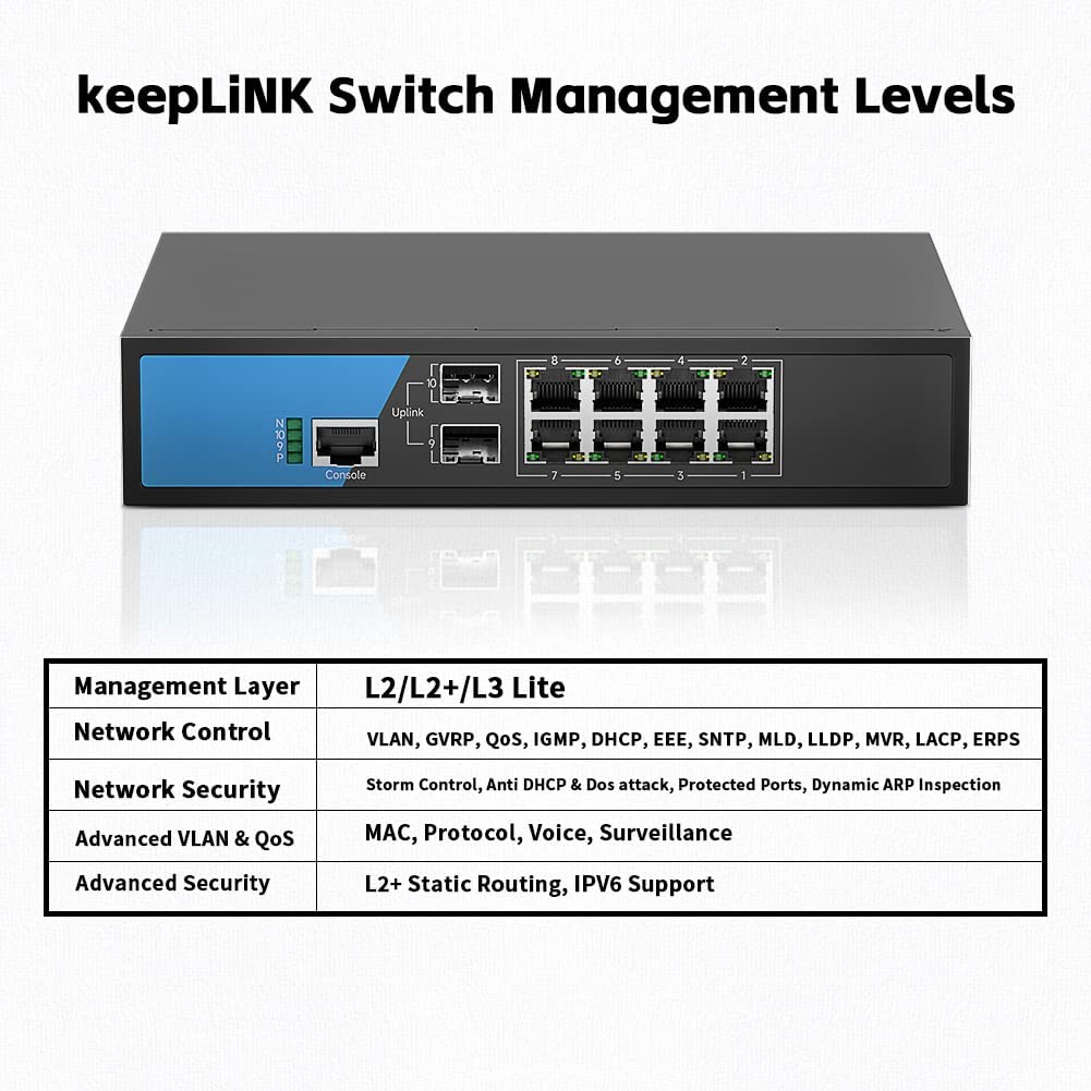 keepLiNK 5 Port Gigabit Ethernet Switch, Unmanaged Desktop or Wall Mount Network Splitter, Plastic Case, Plug and Play with 2 Pcs 3.28ft Cat5 Ethernet Cable