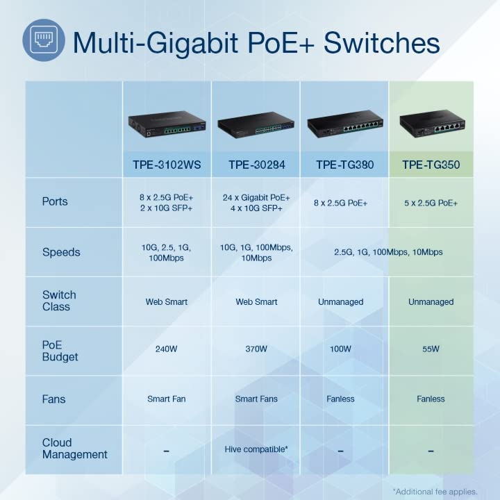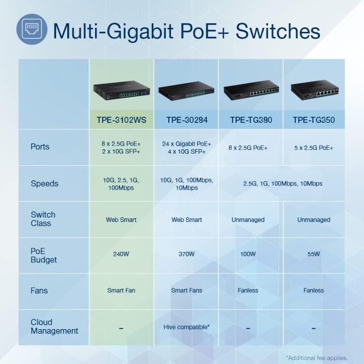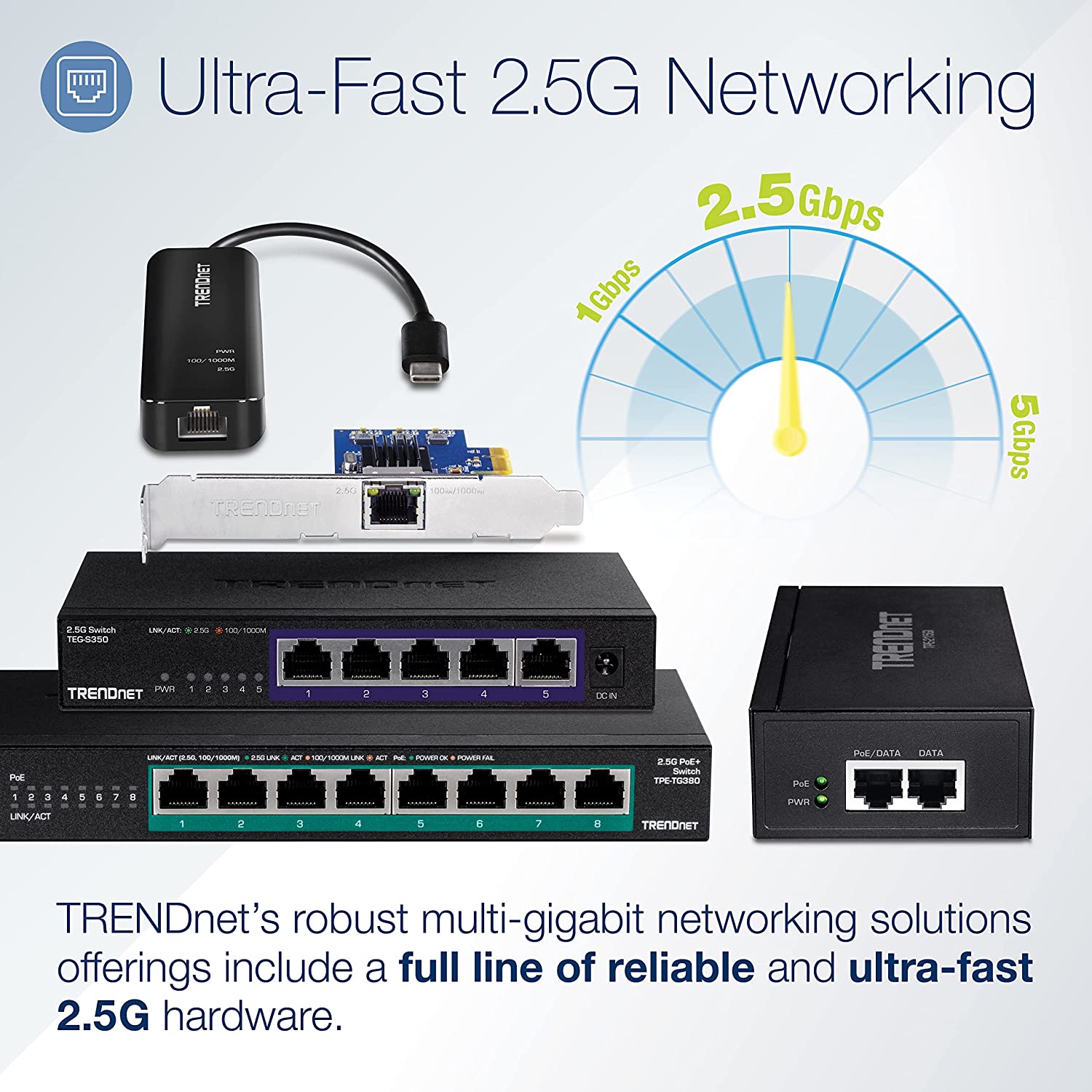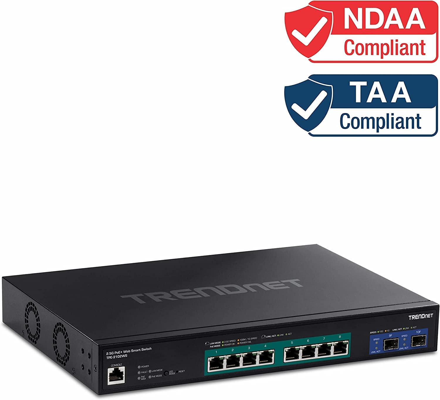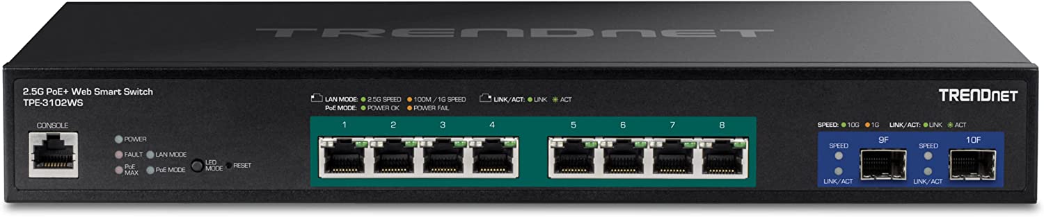 TRENDnet’s Multi-Gigabit Web Smart Switch series offers advanced L2+ features with enhanced traffic management controls to meet the evolving demands of today’s SMB networks. These rack-mountable IPv6-ready managed switches each come with an intuitive web-based interface. Advanced managed switch features include LACP to increase bandwidth between switches by grouping ports together, VLANs for segmenting and isolating virtual LAN groups, QoS for traffic prioritization, port bandwidth controls, and SNMP monitoring, making these 2.5G managed switches with 10G SFP+ slots powerful solutions for any SMB network. Improve voice performance by isolating and prioritizing VoIP traffic from normal data traffic with an easy-to-use voice VLAN feature. These multi-gigabit managed switches come equipped with 2.5GBASE-T RJ-45 ports that provide higher gigabit speeds capable of up to 2.5Gbps over your existing Cat5e or better cabling. The multi-gig managed switches also each offer two dedicated 10G SFP+ slots for high-speed network connections, providing a cost-effective solution in adding 10G link capability to an SMB network. The design of the switches lowers energy consumption and eliminates distracting operating noise. TRENDnet’s reliable 2.5G managed switches with 10G SFP+ slots offer cost-effective solutions to increase your network’s throughput.