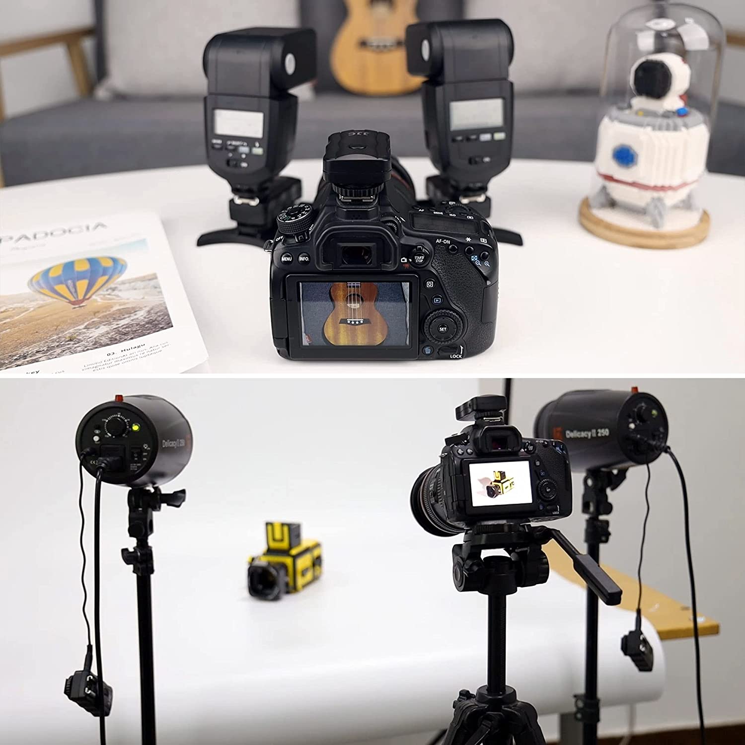 • Package Includes: Wireless Camera Flash Trigger & Remote Control Kit (1 Transmitter, 2 Receivers), shutter cable for Nikon (replaces MC-30), studio light cable x2pcs, 3.5mm-6.3mm adapter x2pcs, 23A battery x1pc, AAA battery x4pcs.