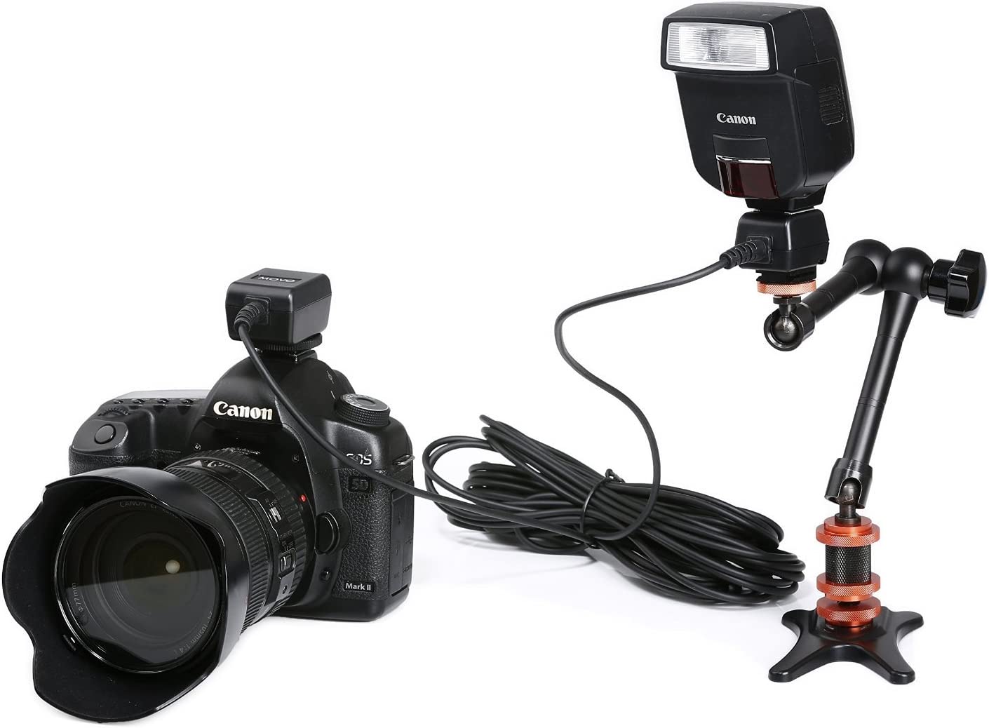 This heavy-duty, off-camera flash shoe cord can be position up to 33 feet away from the camera - perfect for generating unusual and eye-catching lighting effects at a distance from the camera. Off-camera lighting can be used to reduce the harsh shadows commonly encountered with direct on-camera flashes and give your photographs a more natural look.