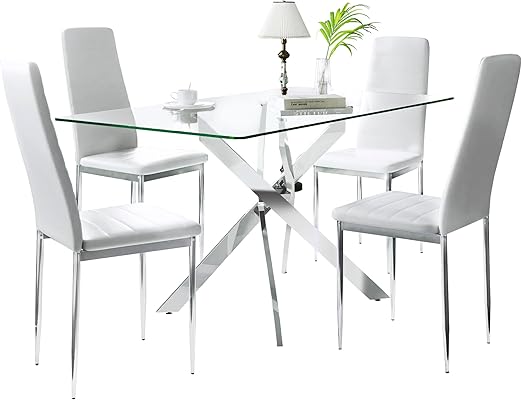 Glass Dining Table Set for 4, 5 Piece Rectanglar Kitchen Table Set Modern Small Dining Table with 4 Chairs for Apartment Dining Kitchen Room